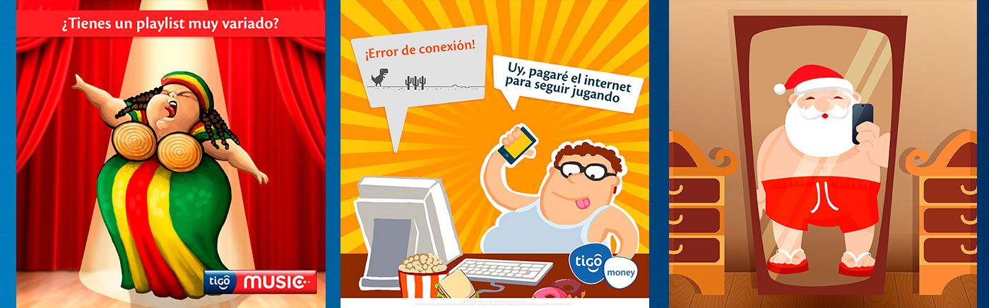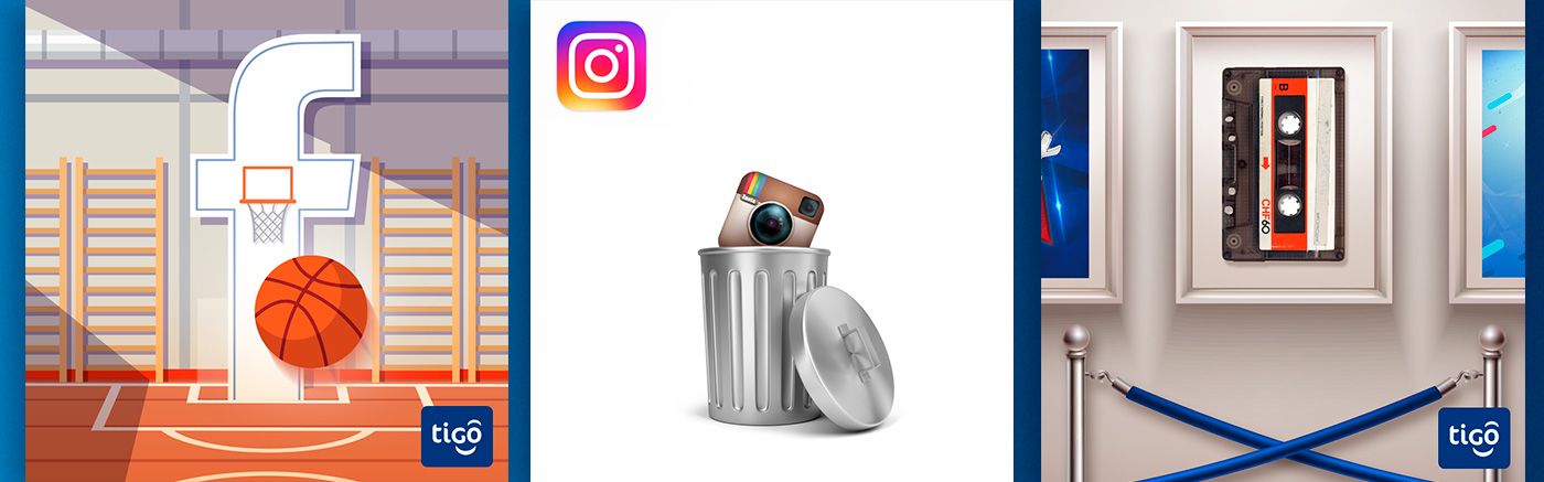 Variedad de diseños para redes sociales y publicidad digital para la telefónica Tigo en Bolivia (2015-2016)