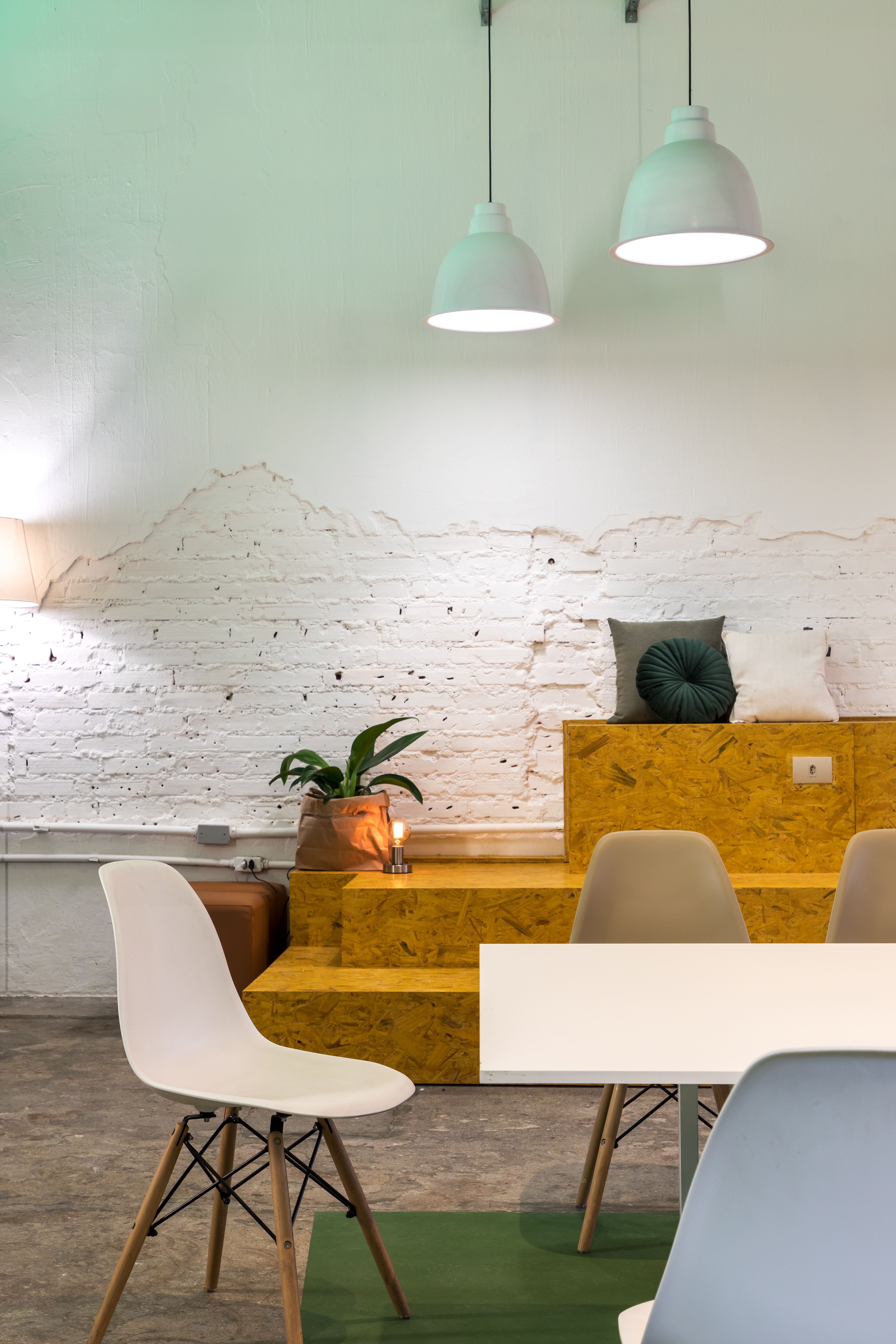 Abbiamo cercato di creare uno spazio accogliente utilizzando materiali a basso costo. Le tribune in OSB, ad esempio, offrono posti a sedere ma ospitano anche le piante di Borealis.