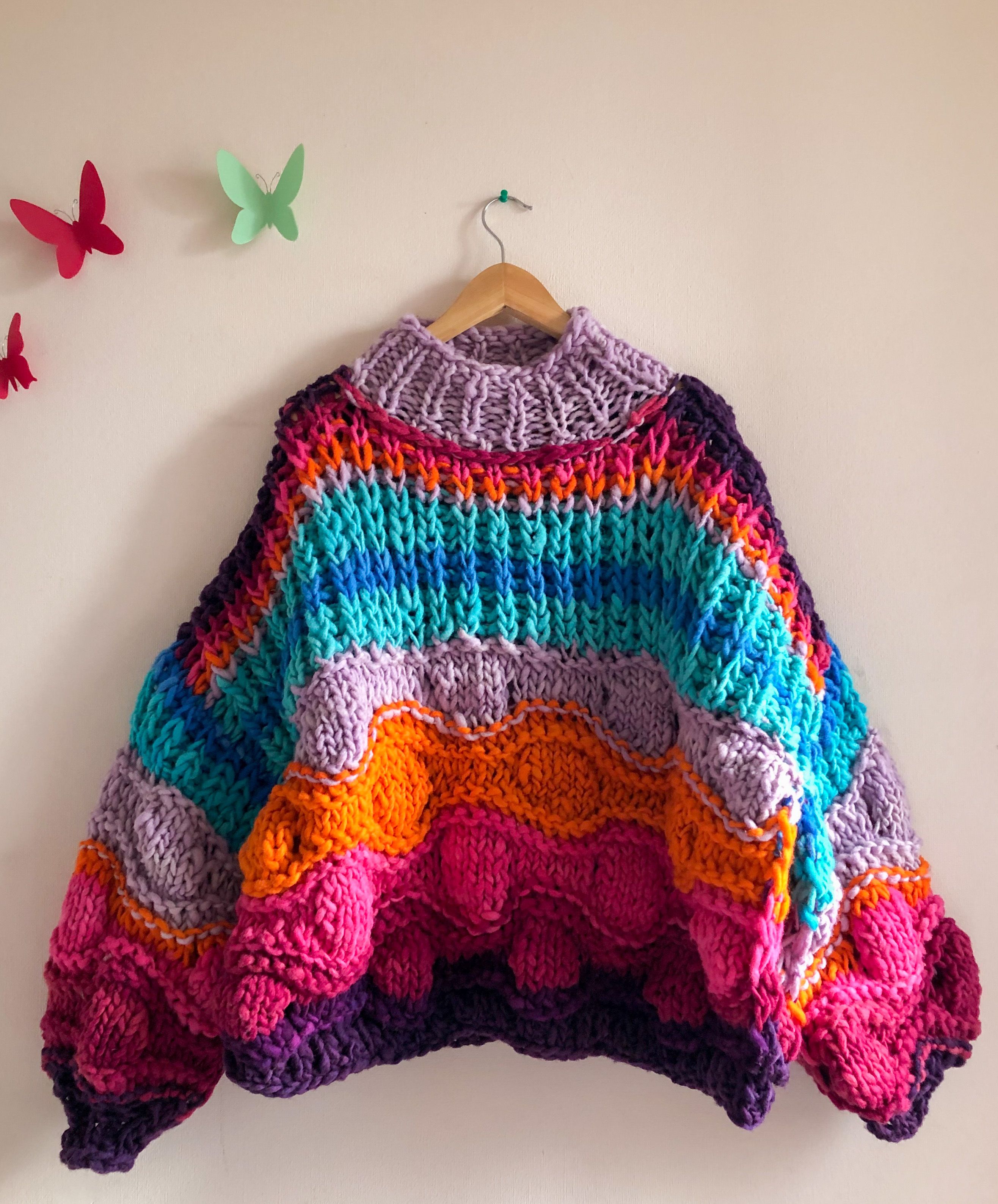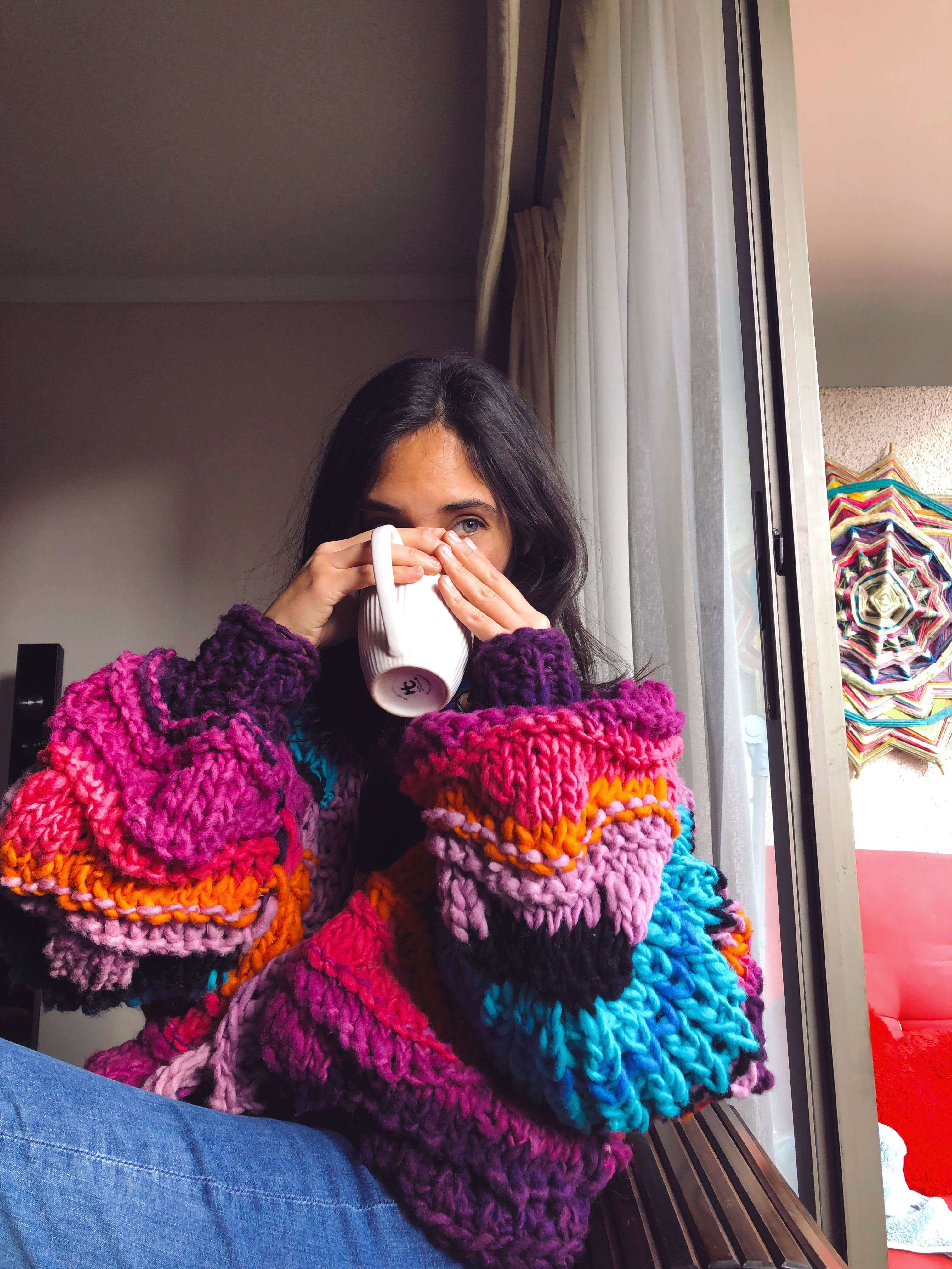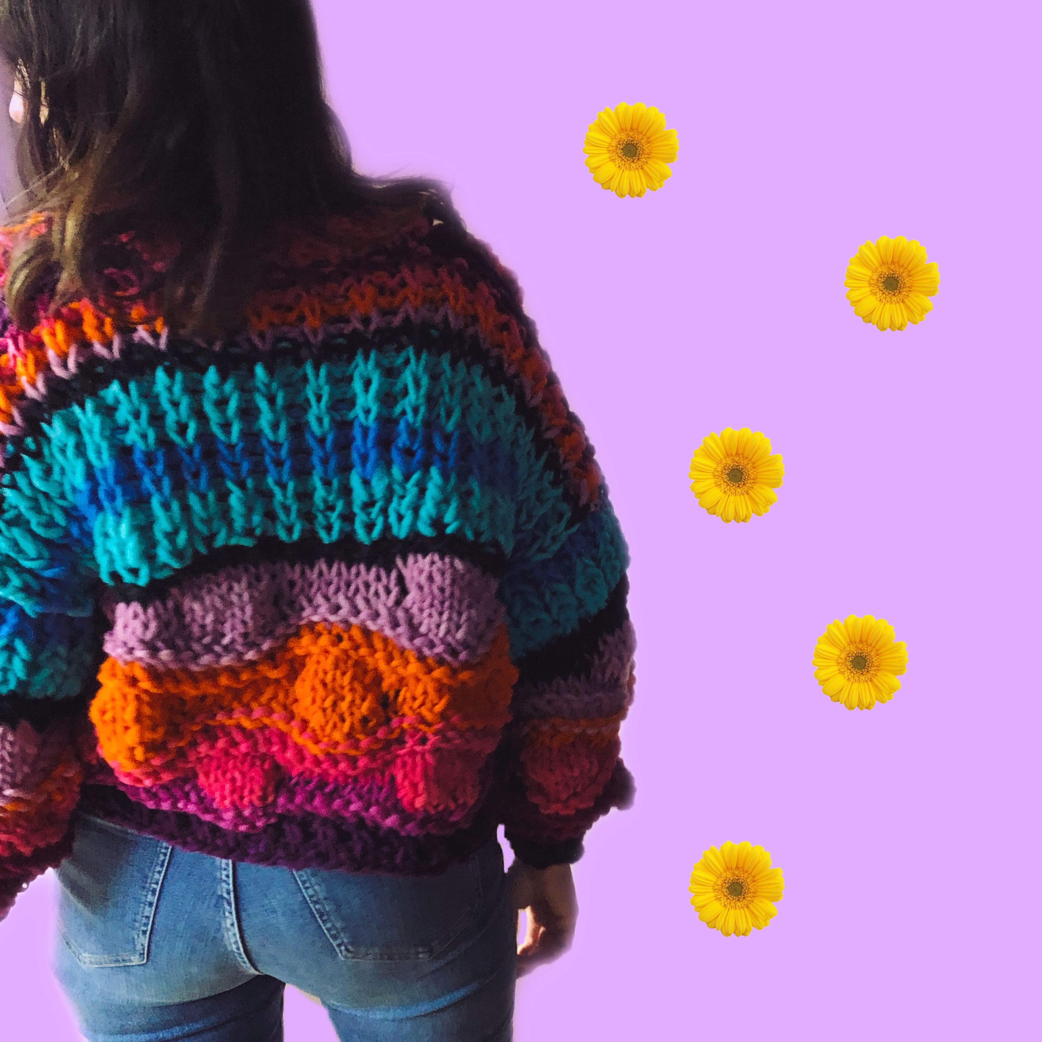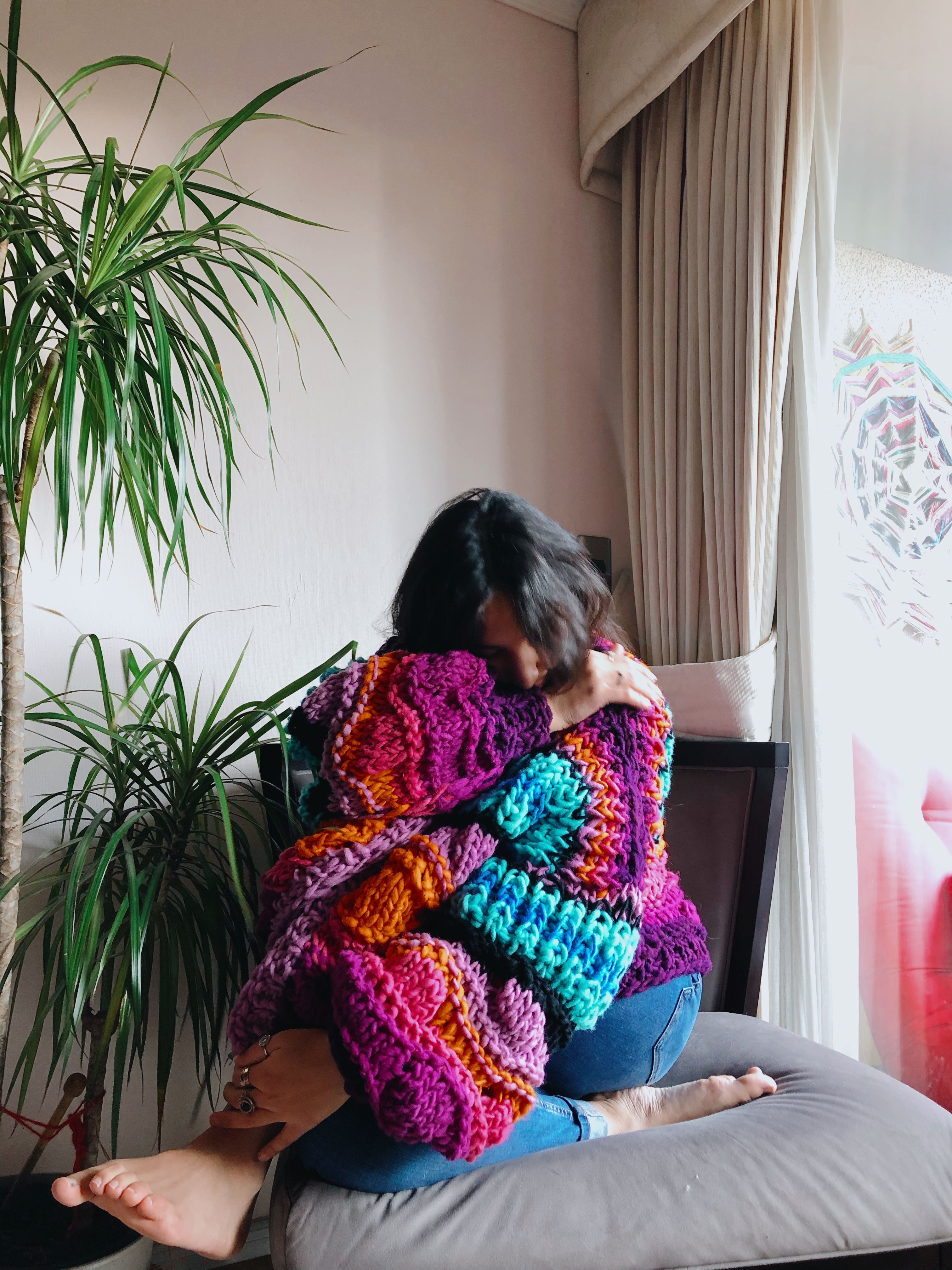 Impara a realizzare un maglione oversize che racconti una storia attraverso il colore, utilizzando la tecnica del lavoro a maglia con ferri circolari