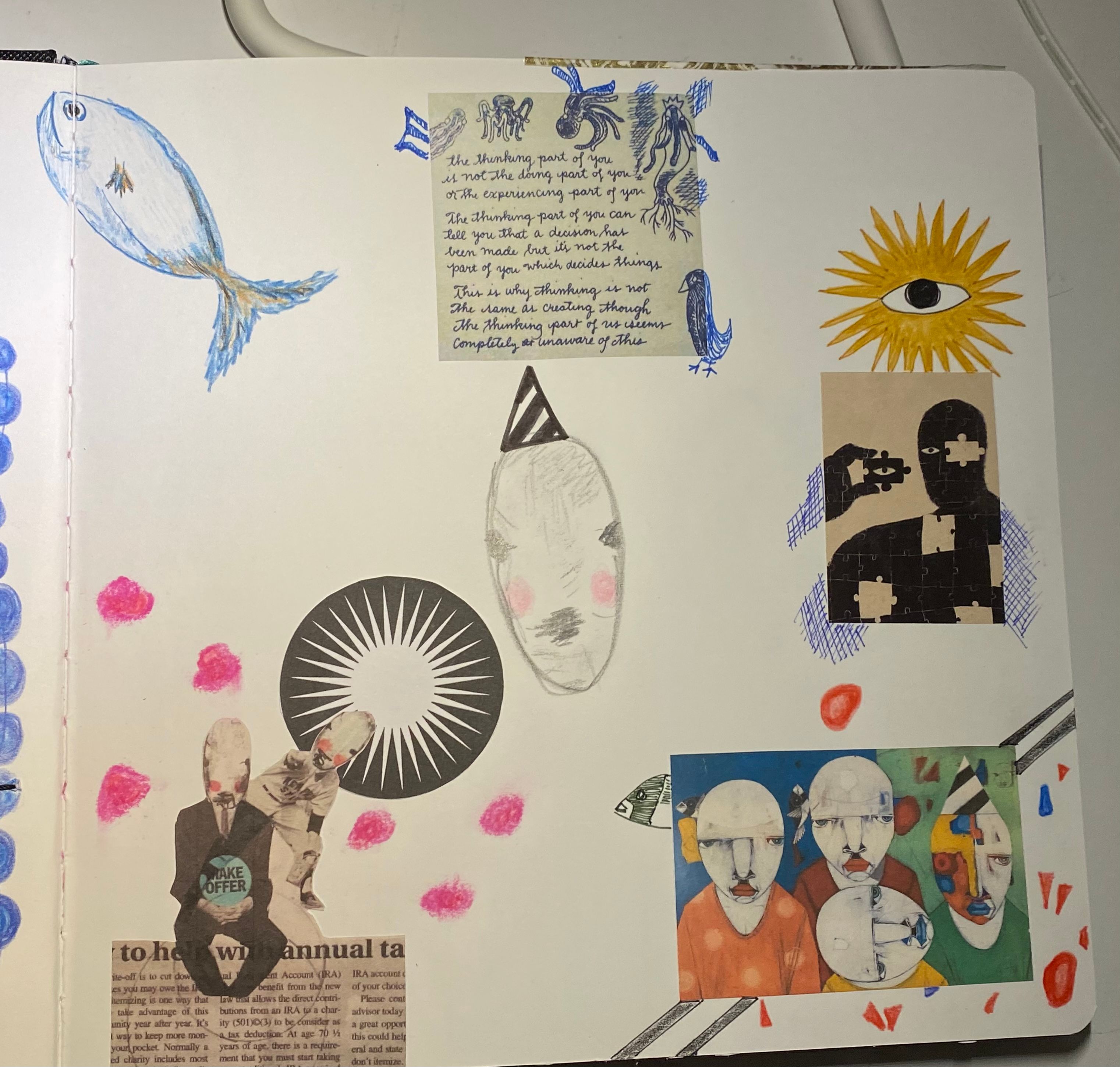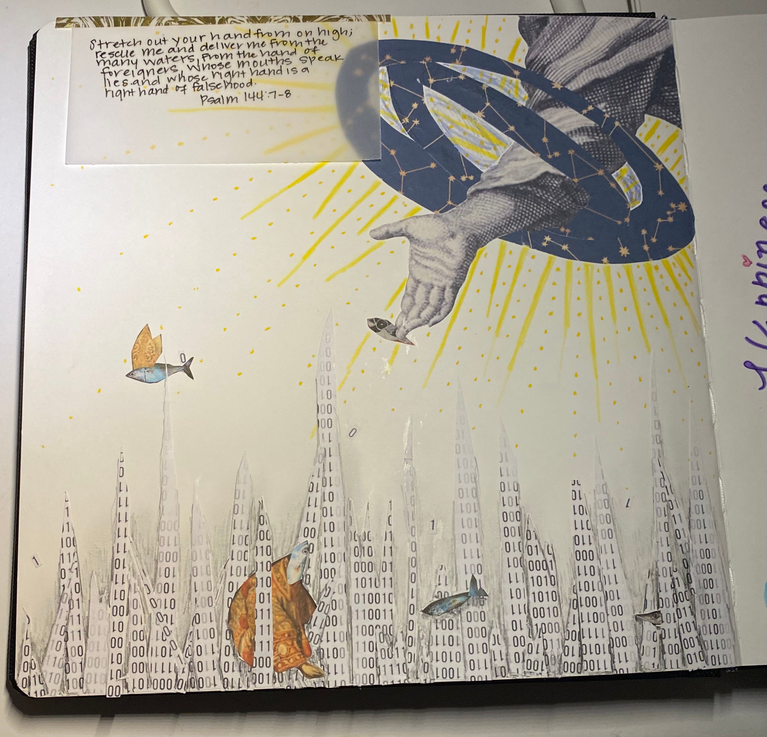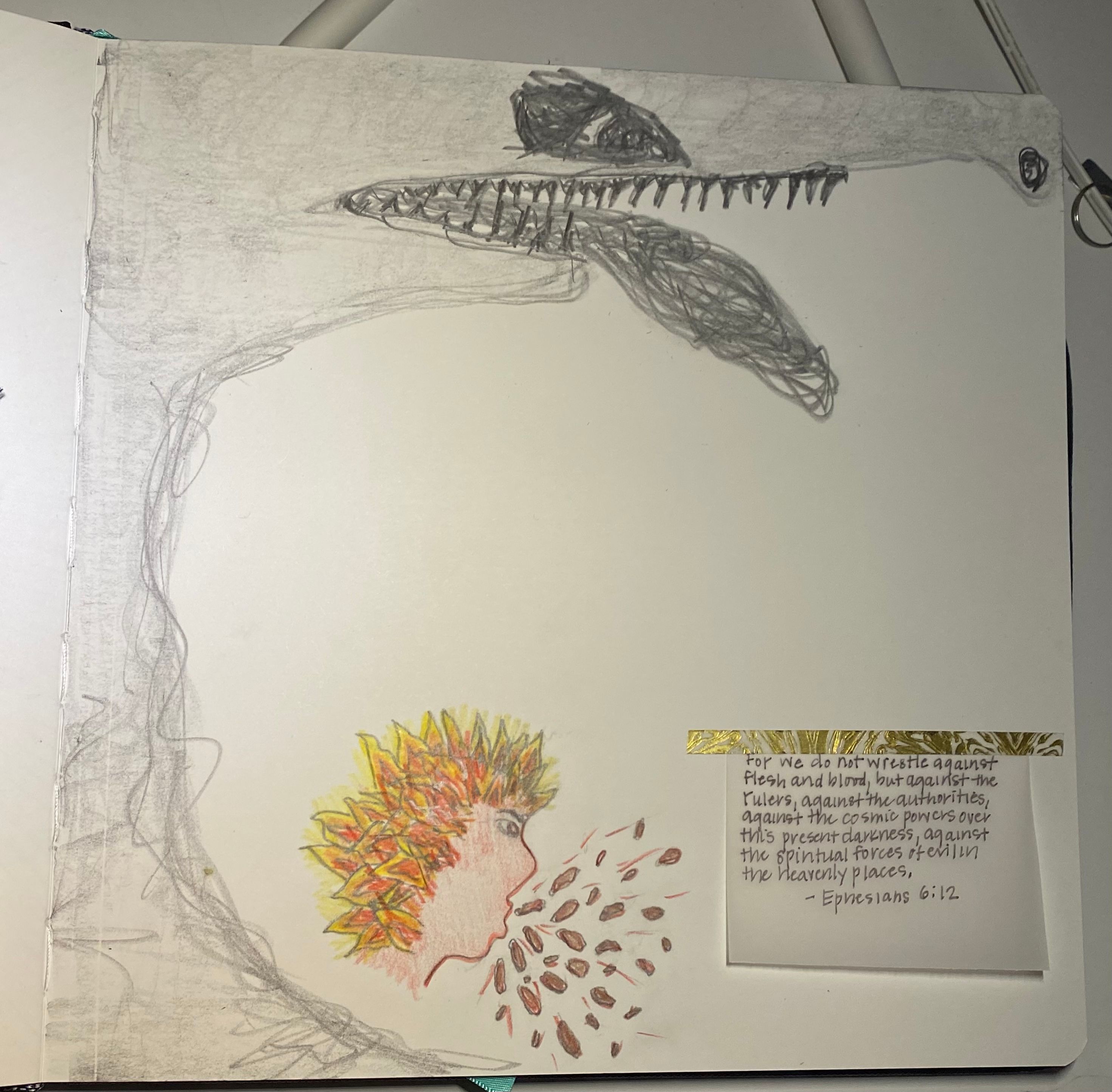 Inspirations old and newMy inspirations also include art as booksState of play with my inspirationsEach theme of light & dark includes a companion bible verse. Theme 1: Good vs evilScience between happy and sad in the brainSpaceBioluminescence in the deepFound this beautiful pattern researching the brain…only too late see that it’s an animal specimen in fearLight is the hope of science and the dark is animal testingWhich wolf do you feed?My demons: the heavy weight of responsibilities and the whisperer of seeds of doubt