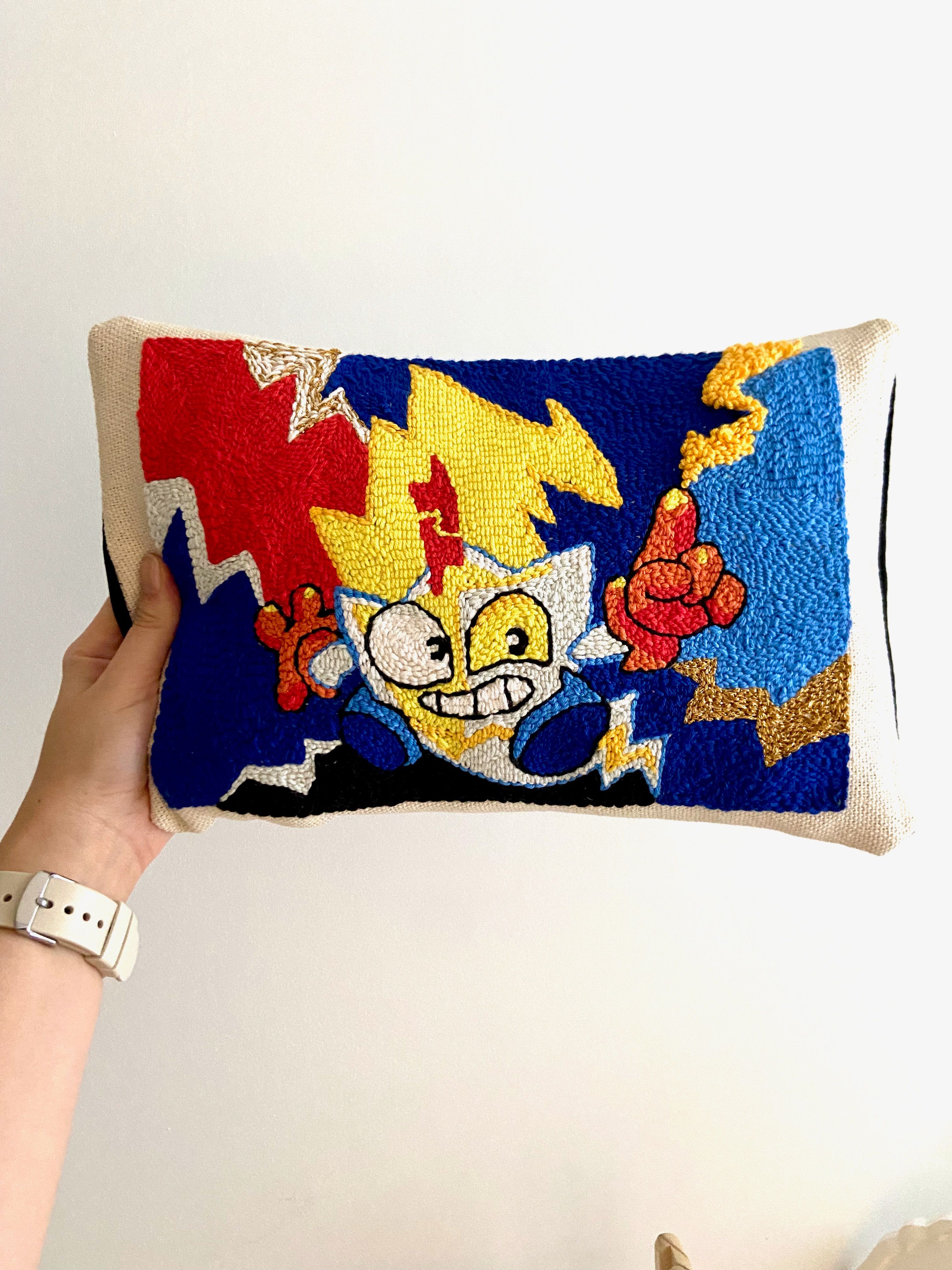 Me fue dificil encontrar los materiales exactos recomendados en el curso así que utilicé lo que encontré (aguja e hilos mas finos) y utilicé las técnicas / tips del curso para realizar diferentes elementos decorativos y un cojín con personaje infantil para mi hijo.