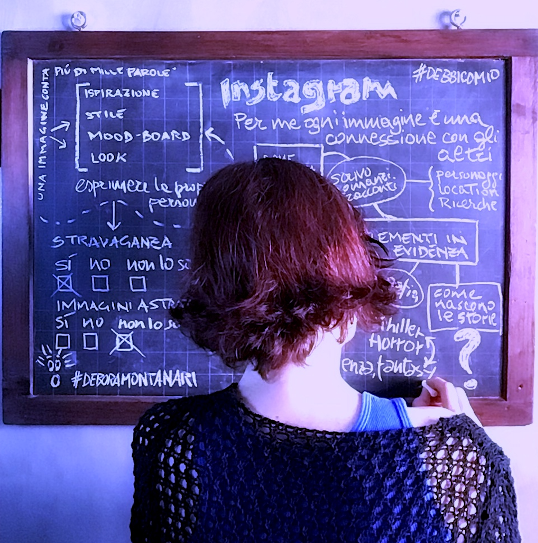 L'immagine rappresenta me al lavoro per personalizzare il mio Instagram. Scattata con iPad Pro e modificata con Snapseed. Il colore è in linea con le precedenti immagini del mio feed, per vederlo cerca #debbicomio su Instragram.