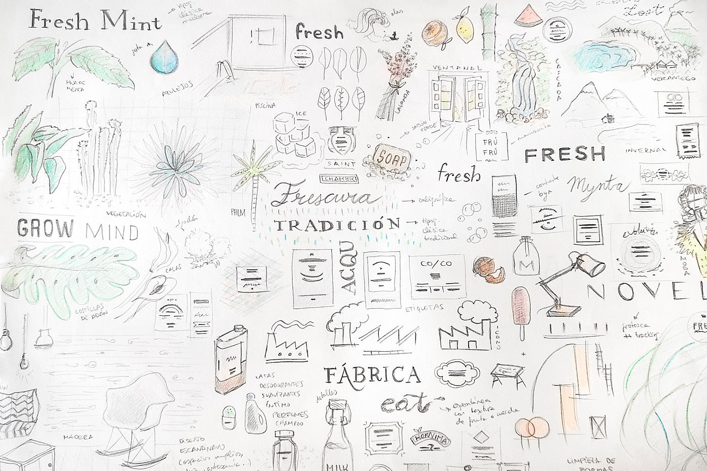 En el proceso creativo se desarrolló un moodboard para definir el estilo de diseño y el concepto a transmitir, del cual se escogió la frescura como concepto, sin olvidar el valor tradicional, y tomando como referencia el estilo escandinavo y las formas geométricas.