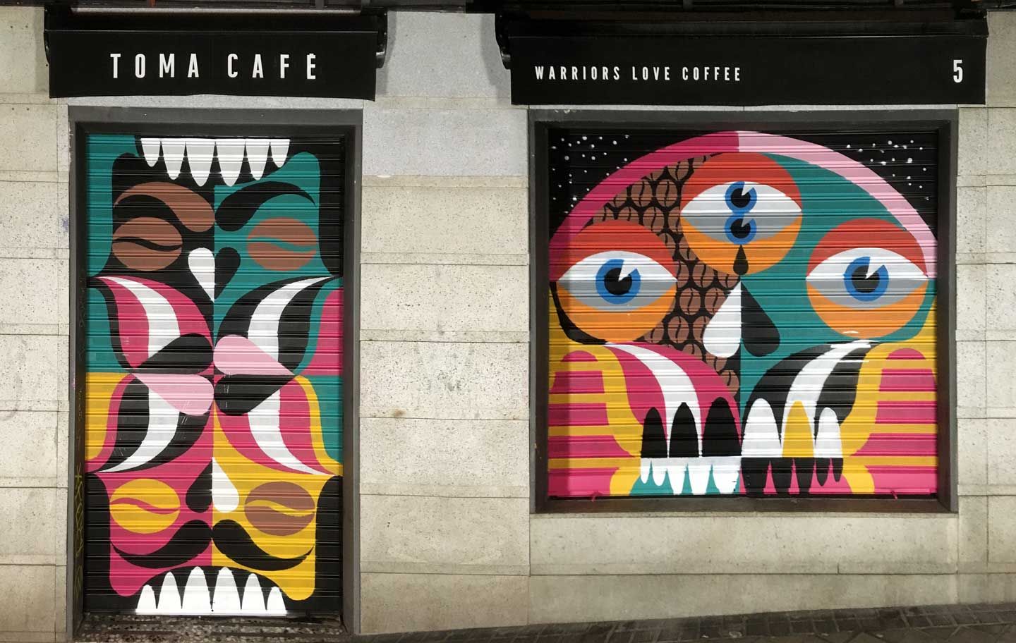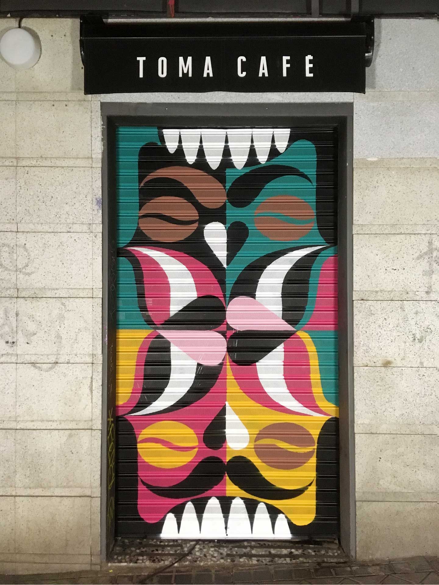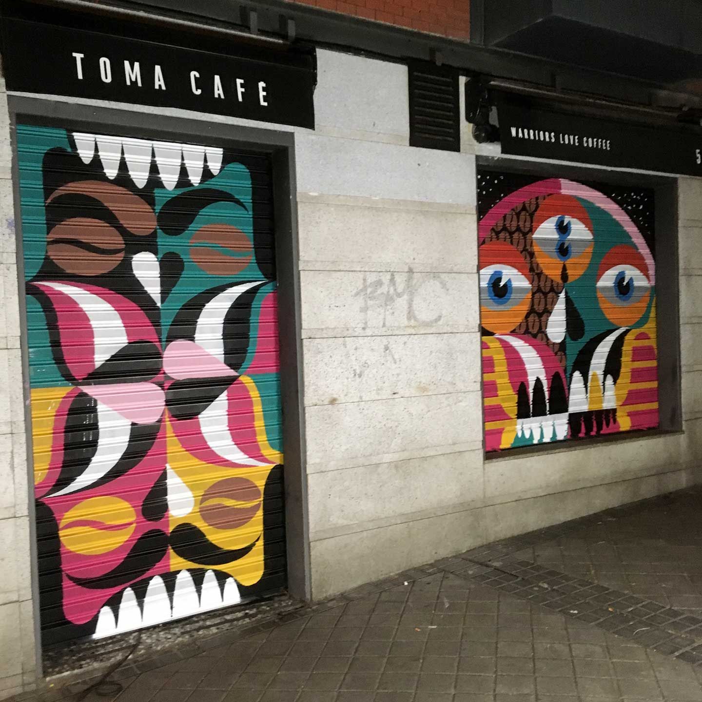 Homes Tone creative duo works: @homes_tone : @drhomes & @rafa_bertone Para TOMA CAFE Olavide / Mural made in collaboration with Dr Homes For TOMA CAFE Olavide