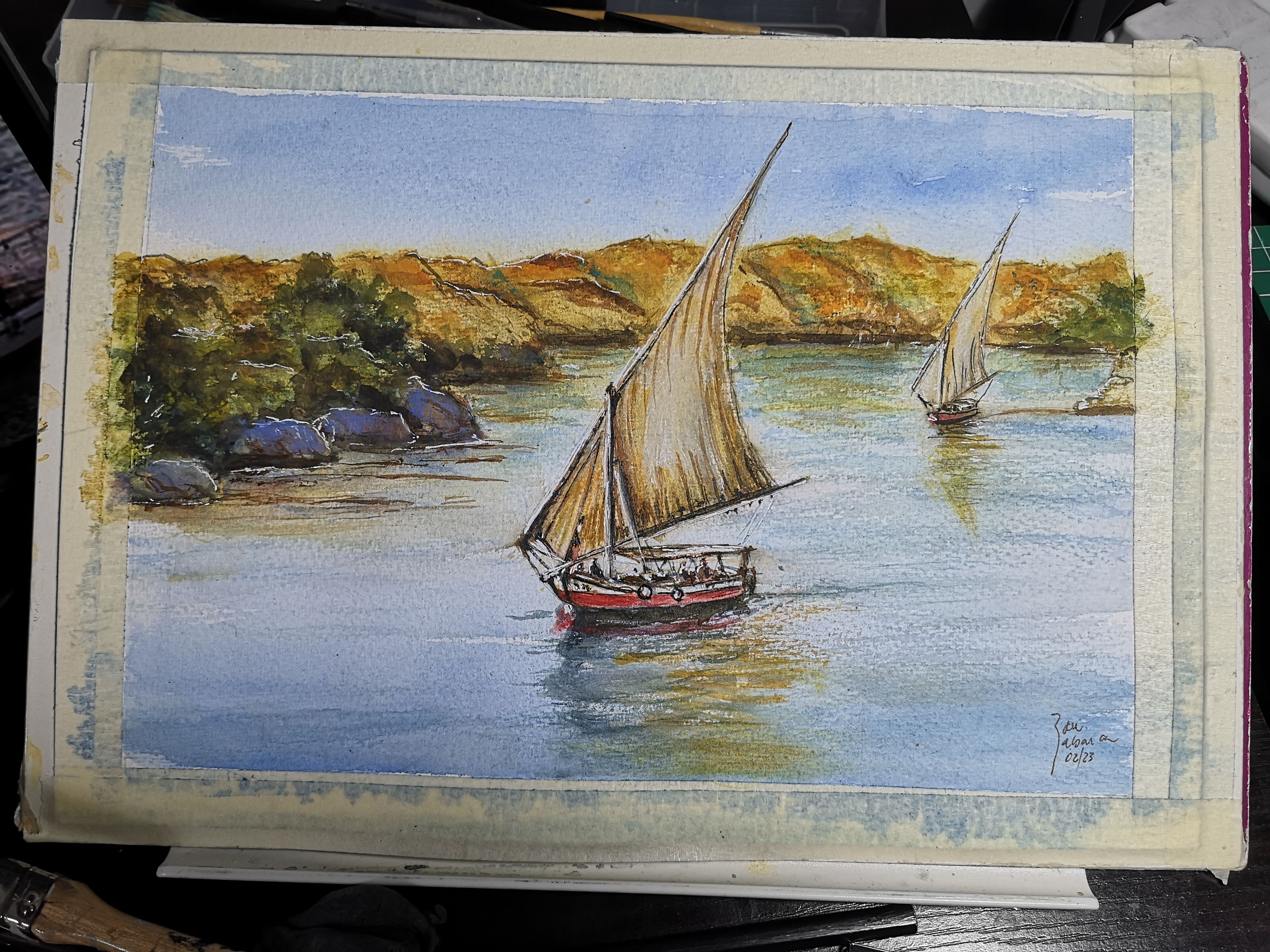 Naos egipcias Mi proyecto del curso: Pintura en acuarela de paisajes marinos