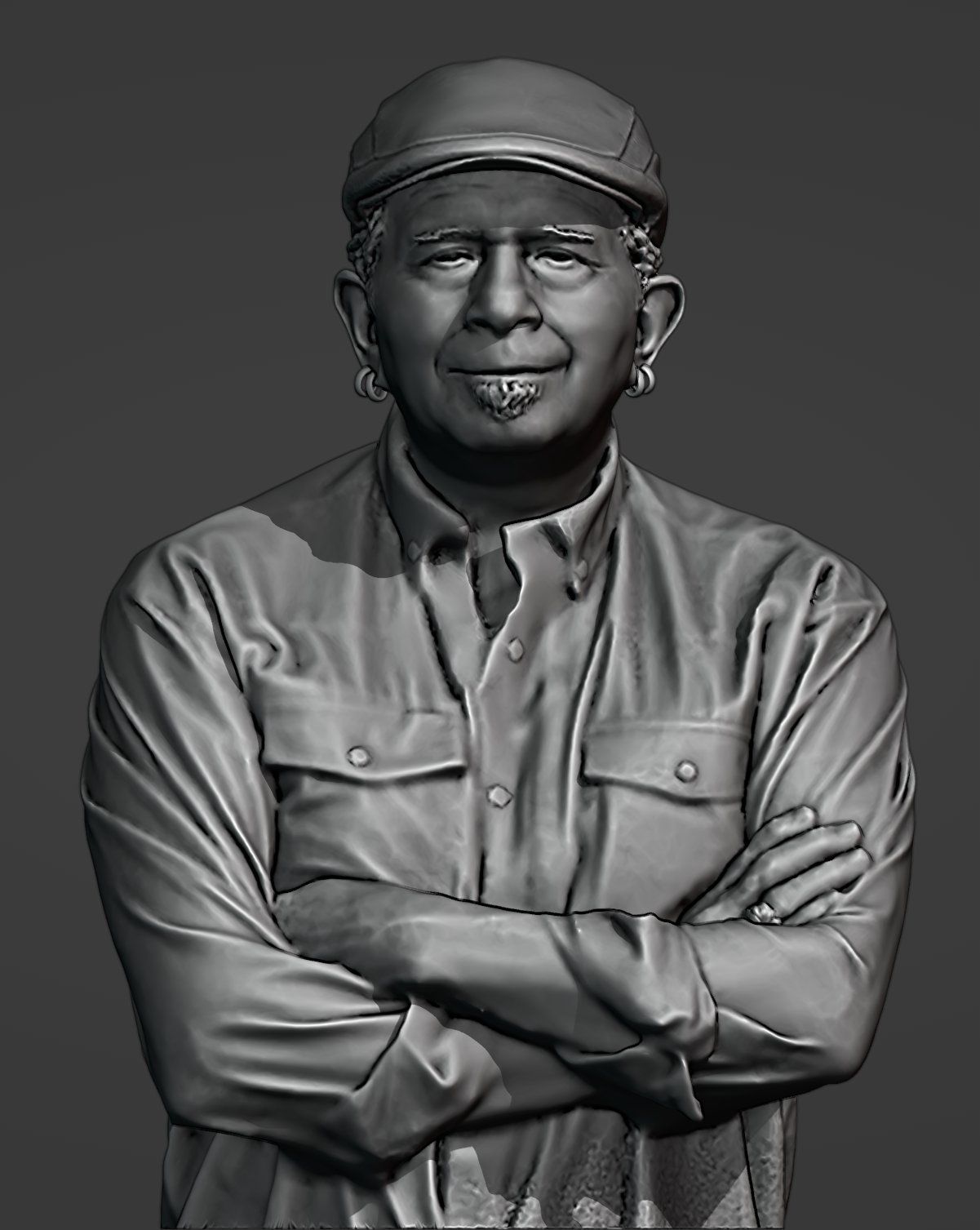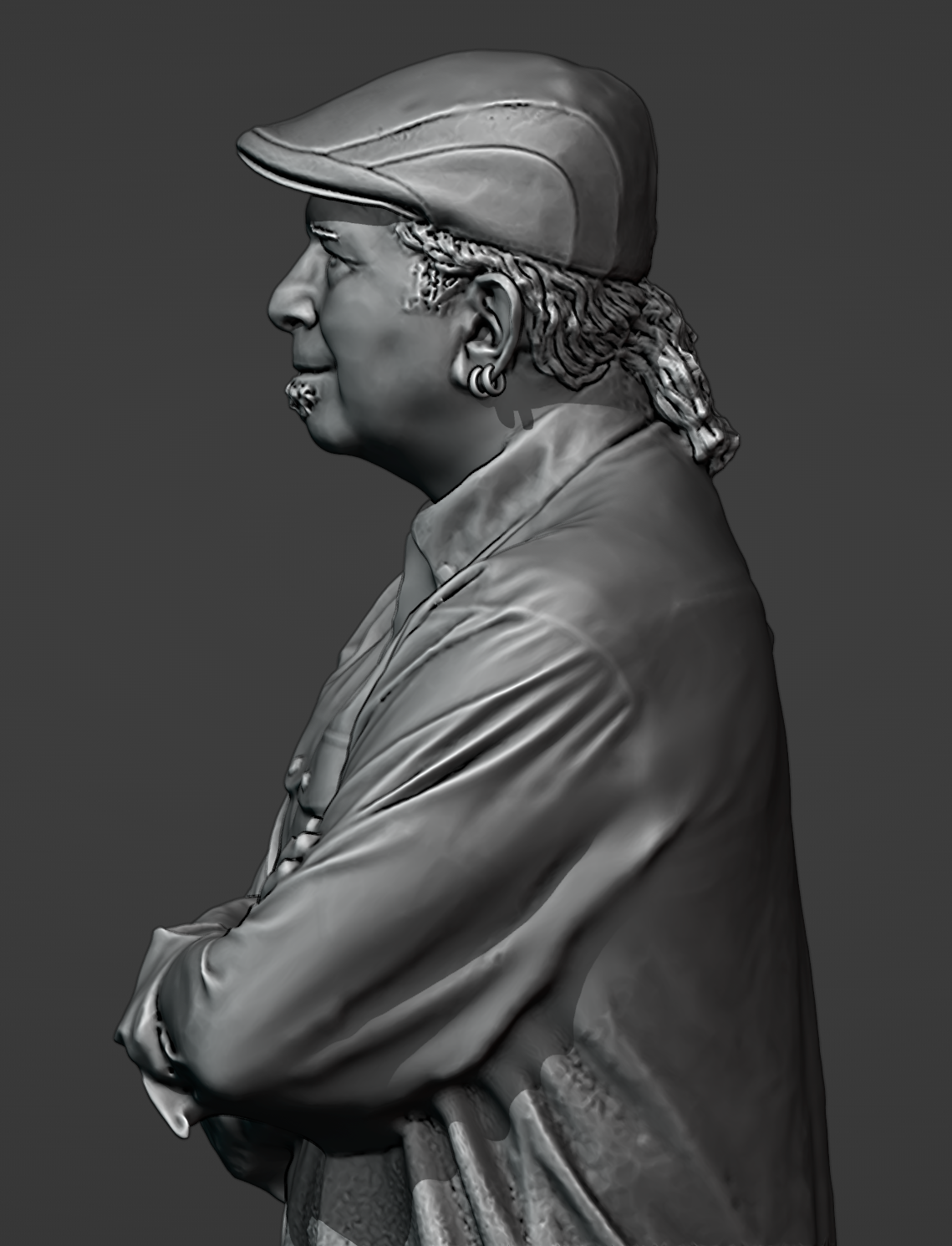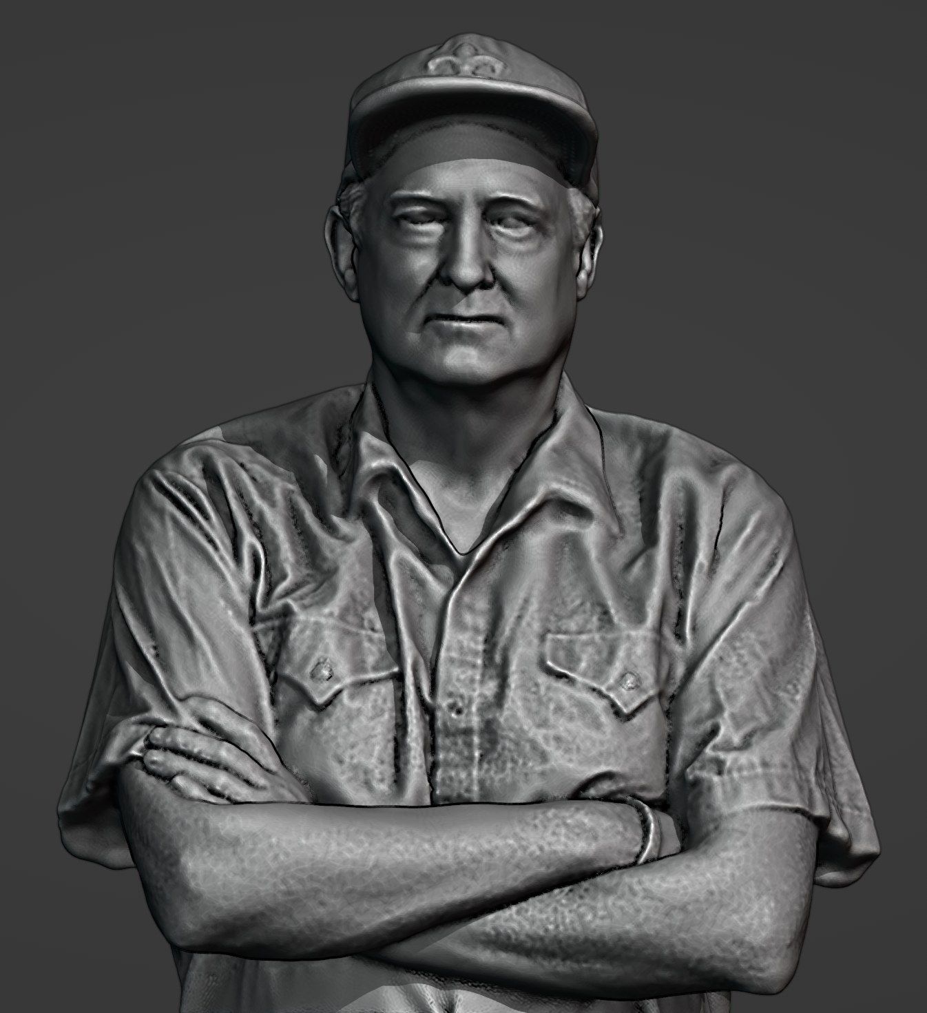 The .Obj was then imported into MeshMixer and inspected for degenerate faces and floating geometry. The cleaned file was exported as .stl and then imported into Blender for the final screenshots. A cavity and shadow pass was added, and the default Studio lighting used.