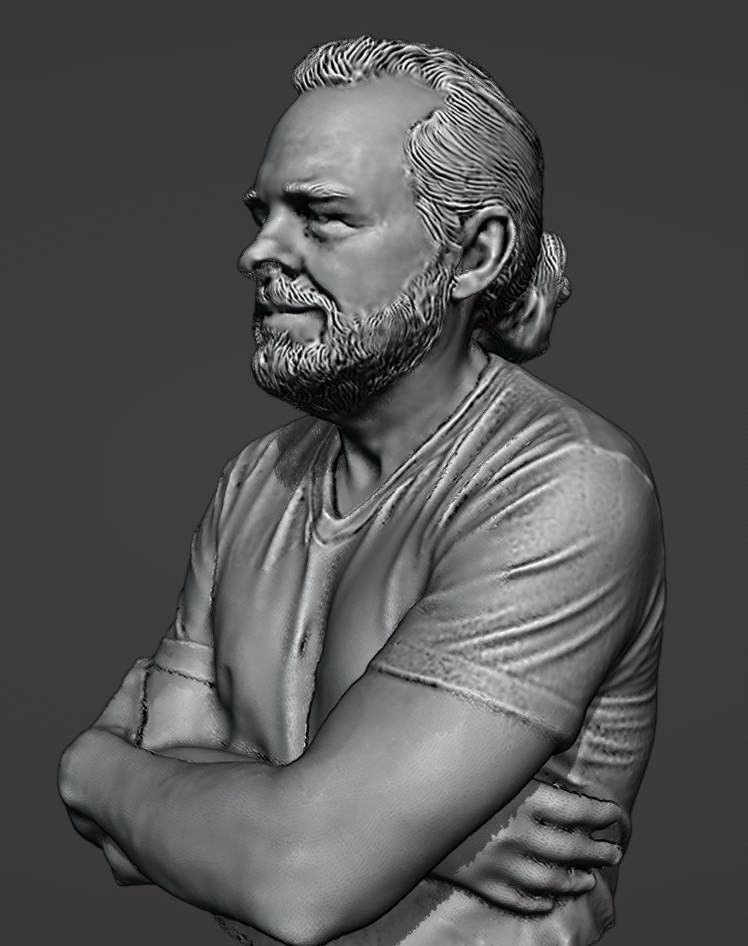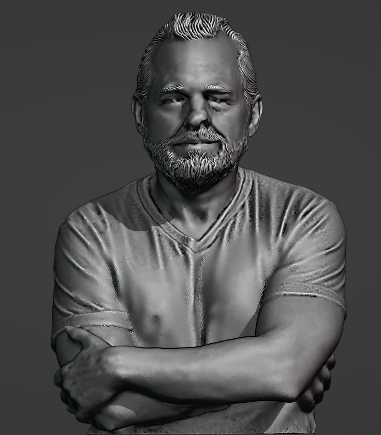 The point cloud was meshed, and holes filled. A denoise was run at a value of 3. The model was exported as .obj into Zbrush.