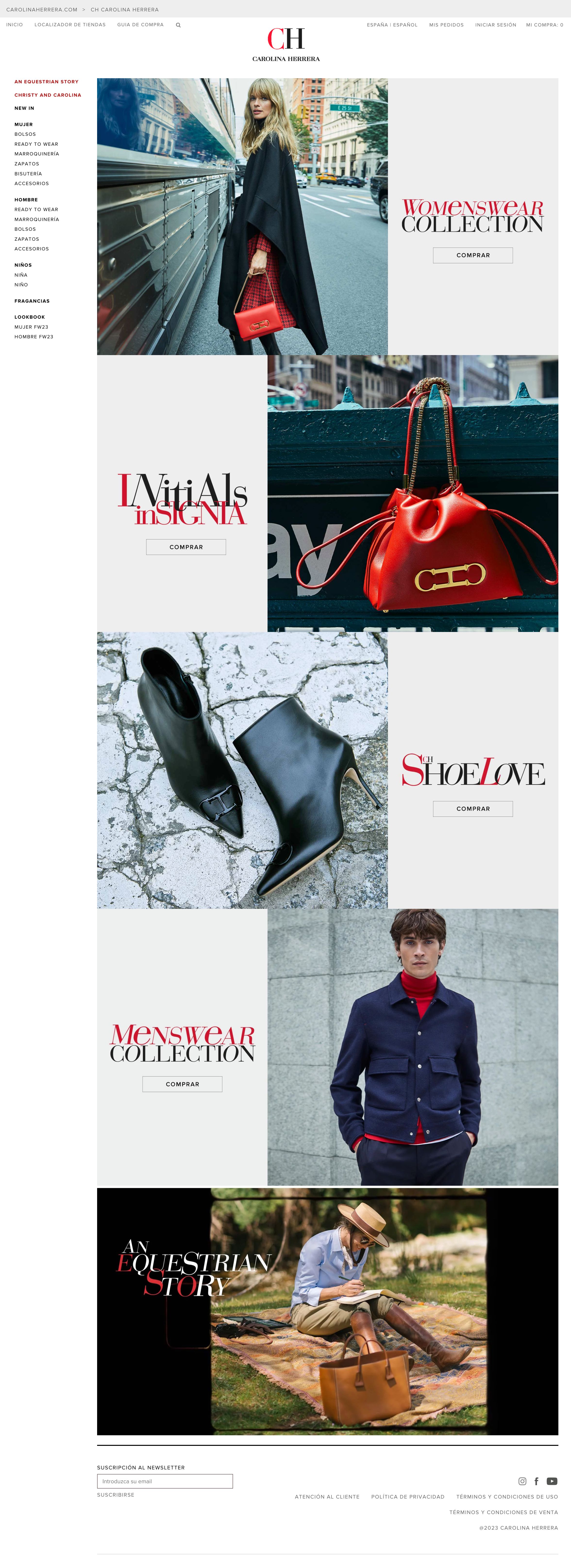 Selección de Diseños de Homes, Landings y Newsletters para distintos materiales de campañas especiales de la marca de moda CH Carolina Herrera.