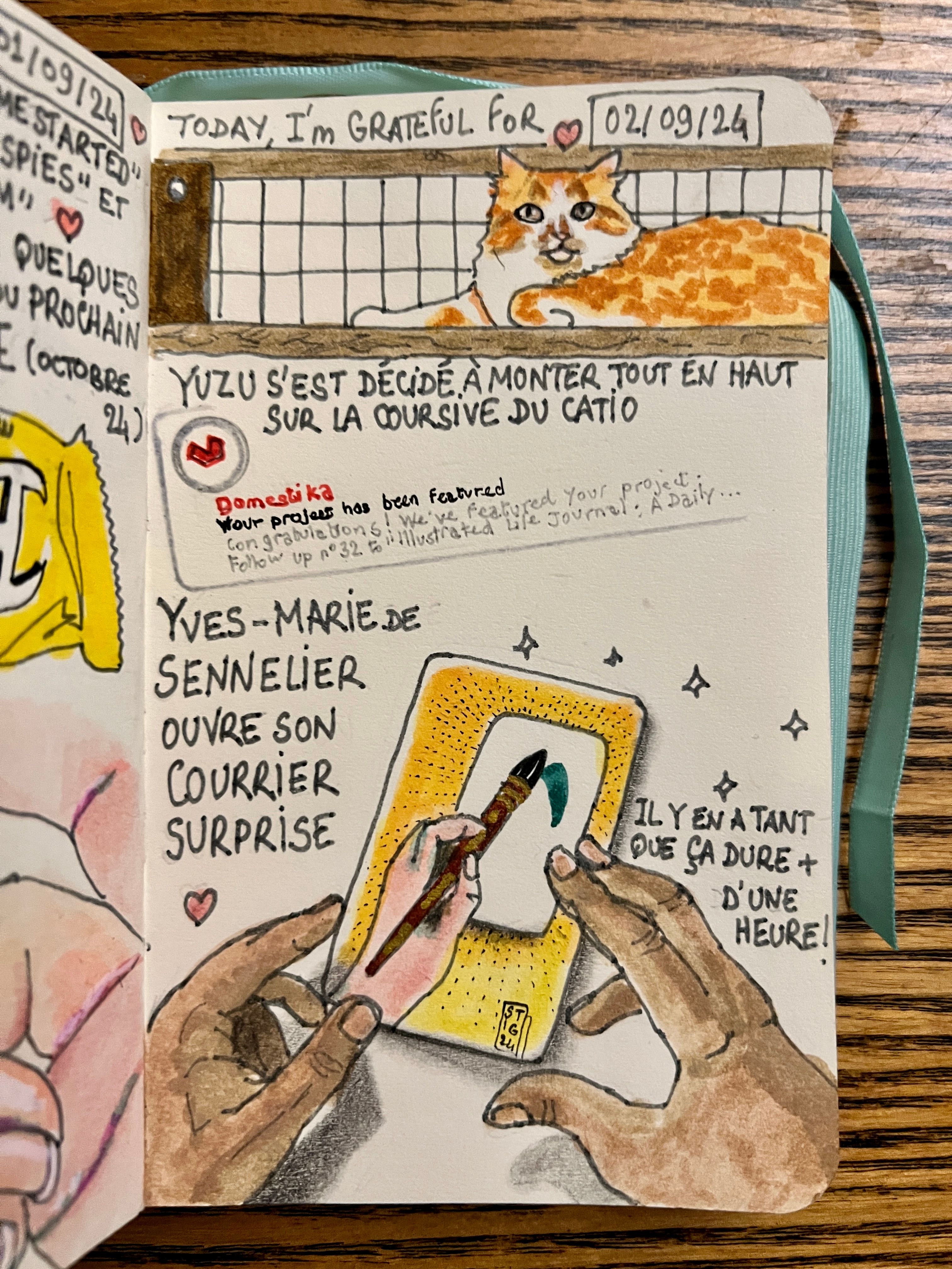 From time to time, someone tells me that they began illustrated journaling too, that my sketchbook sparked their creative fire in this direction, and I'm so pleased !