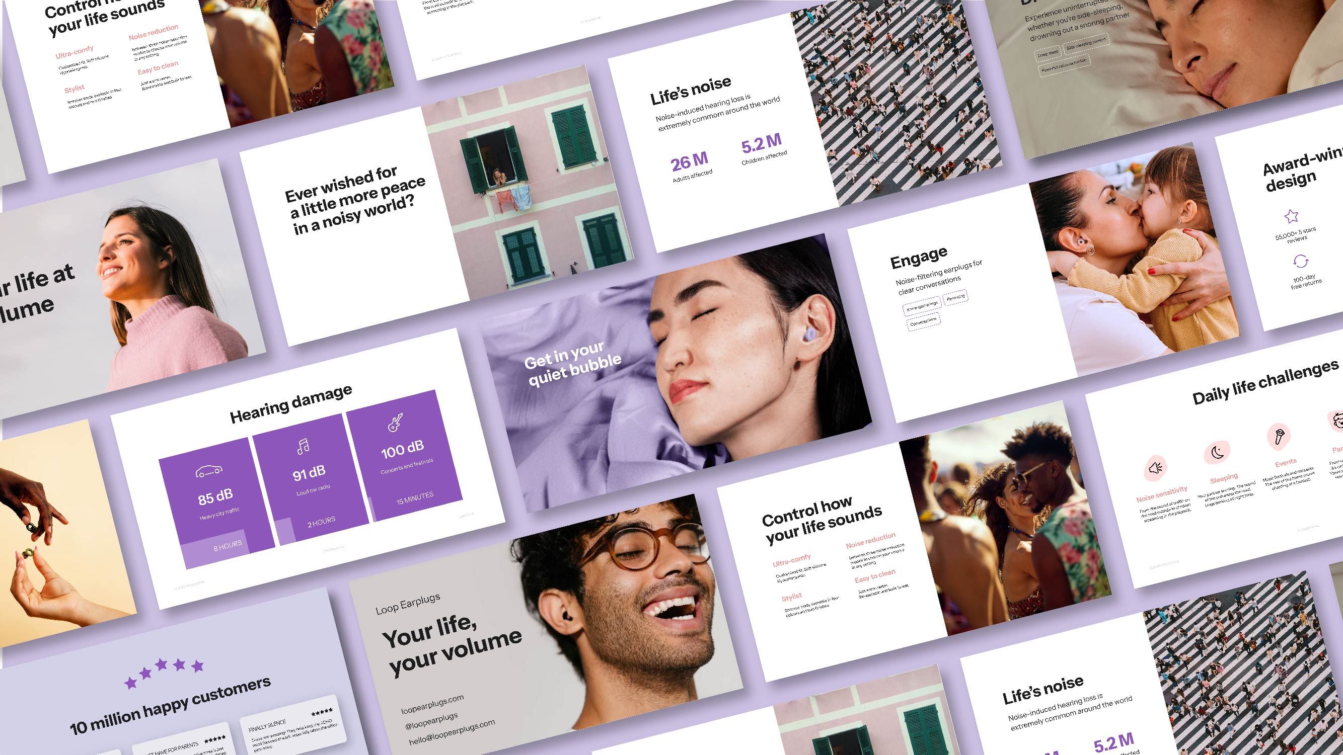 As part of the Presentation and Data Design course with Katya Kovalenko, I developed a persuasive pitch deck for a product I personally enjoy – the Loop earplugs. I began by highlighting the issue of auditory sensitivity and the daily challenges it poses, because, let's face it, life is noisy.