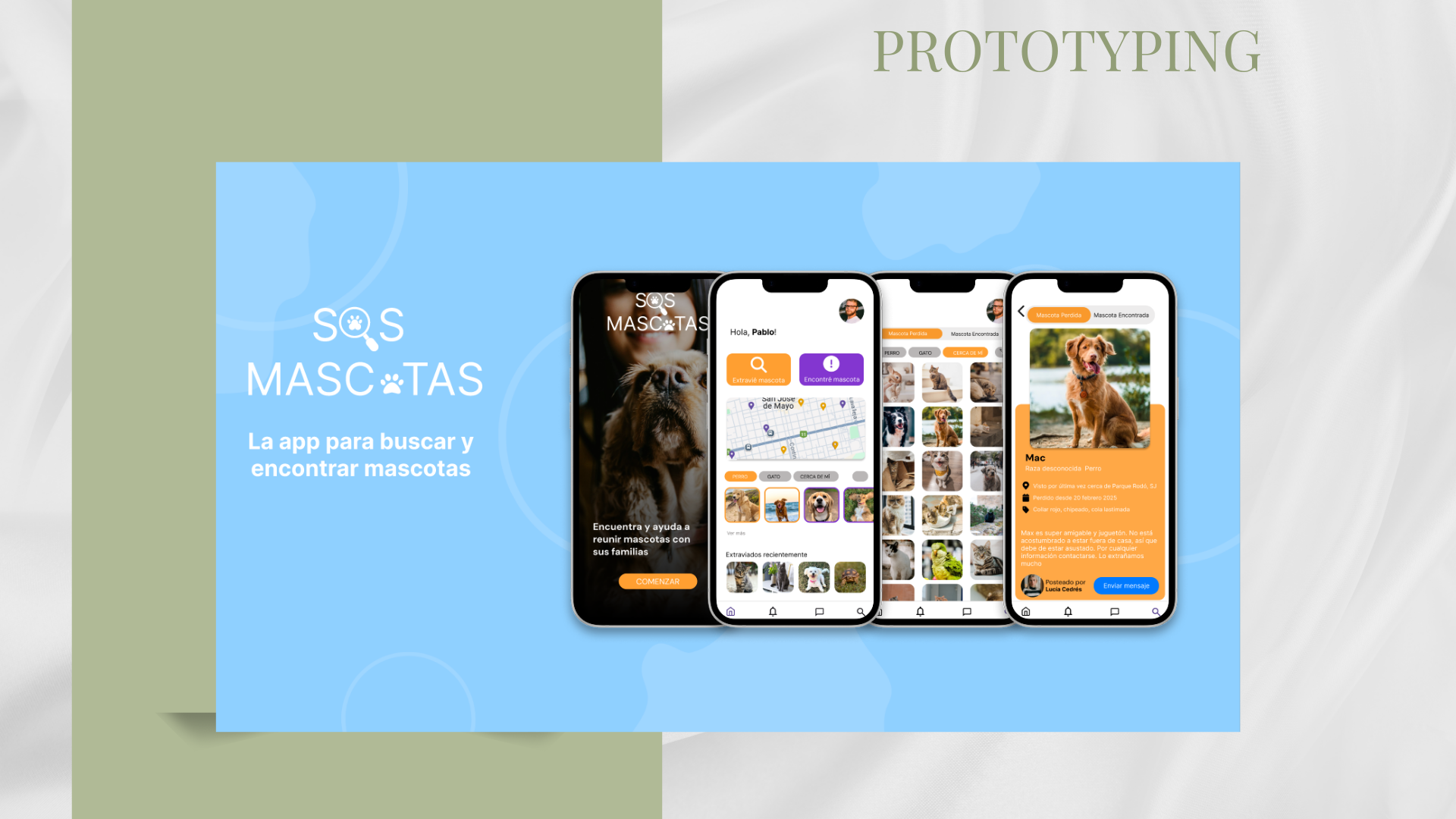 La solución propuesta es una aplicación intuitiva que permite publicar reportes de mascotas perdidas y encontradas con fotos, ubicación y detalles clave. El diseño UX/UI se enfocó en la facilidad de uso (tomando en cuenta que parte de los usuarios objetivos son personas mayores), accesibilidad y una experiencia fluida para que cualquier usuario pueda interactuar con la app sin complicaciones.
