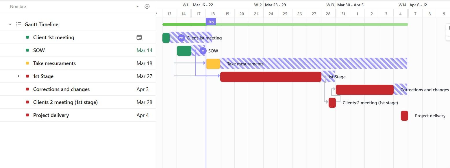 Mi proyecto esta basado en la empresa en la que trabajo de diseño de interiores, al realizar este curso me di cuenta de que estaba en buen camino con lo que ya tenía y me ayudo a pulir y mejorar la manera en la que llevamos os proyectos. Básicamente lo que presento como SOW es lo que ya le entregábamos al cliente puesto que estaba bastante completo.