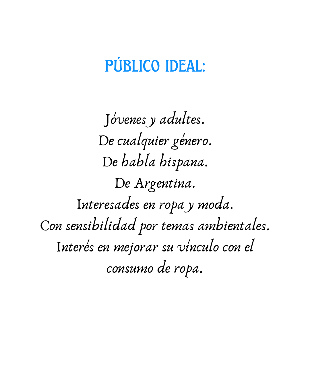 Considero que mi público pueden ser también personas solo interesadas en ropa en general sin que tengan particular interés en sostenibilidad.