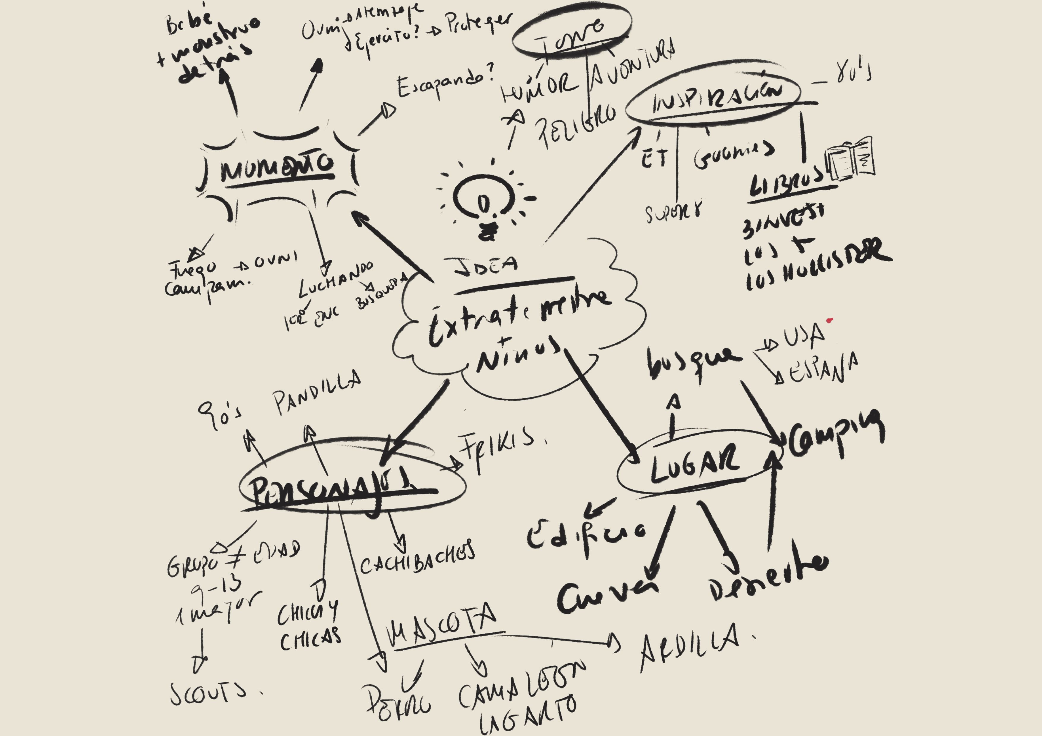 El primer paso fue concretarla idea. Tenia claro que en mi lilustración aparecieran unas niños y un extraterrestre. Con la lluvia de ideas me fue posible explorar varias opciones y concretar exactamente que queria mostrar. Es uno se las pasan más importantes para que la ilustración haga coherencia y tengamos las Ideas claras antes de empezar a dibujar.