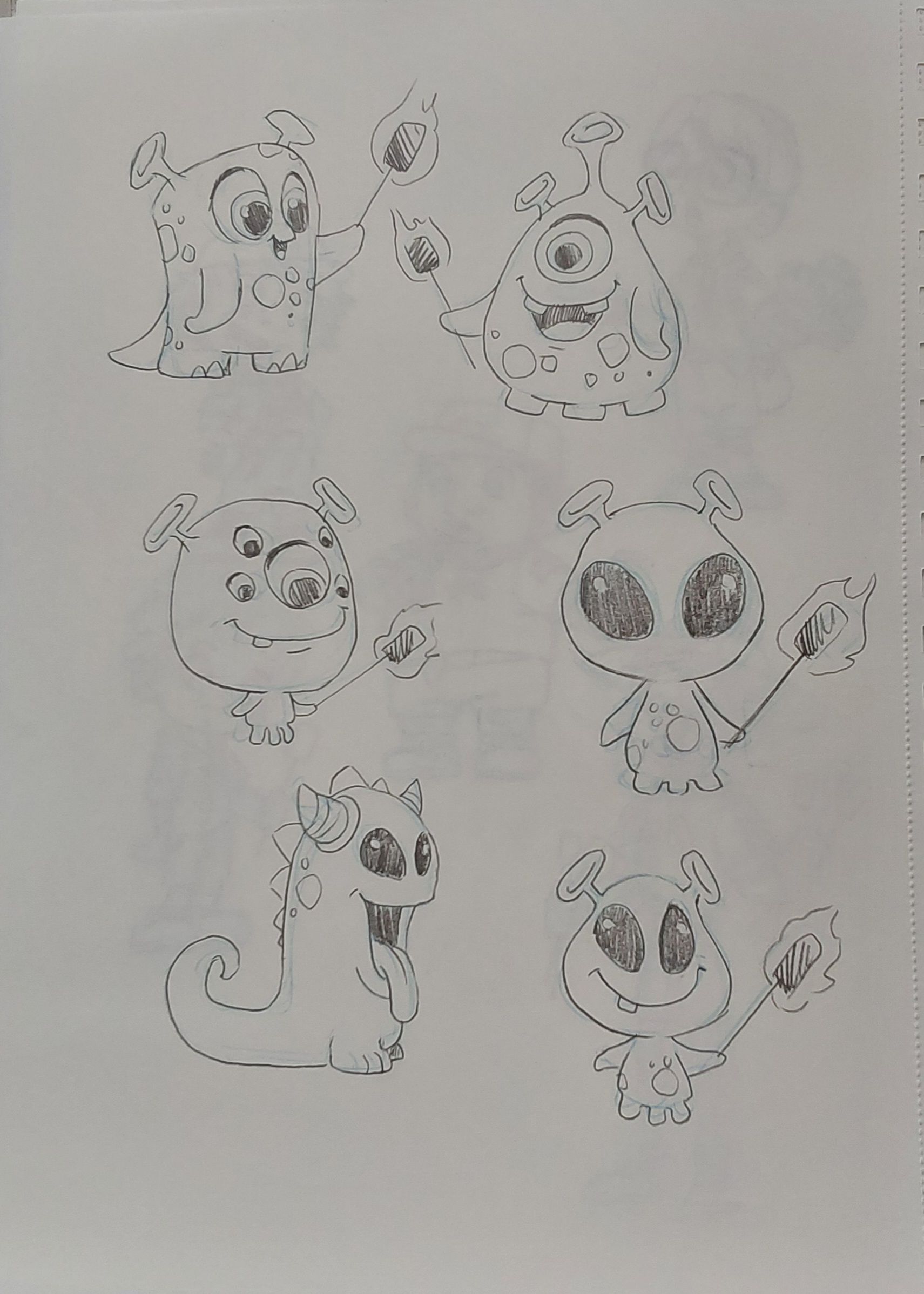 Una volta che ho avuto un'idea chiara dei personaggi che sarebbero apparsi nell'illustrazione, ho proceduto a disegnarli, cercando le loro personalità uniche che avrebbero contribuito alla storia che volevo raccontare con la mia illustrazione. Ho svolto questo passaggio analizzando carta e matita.
