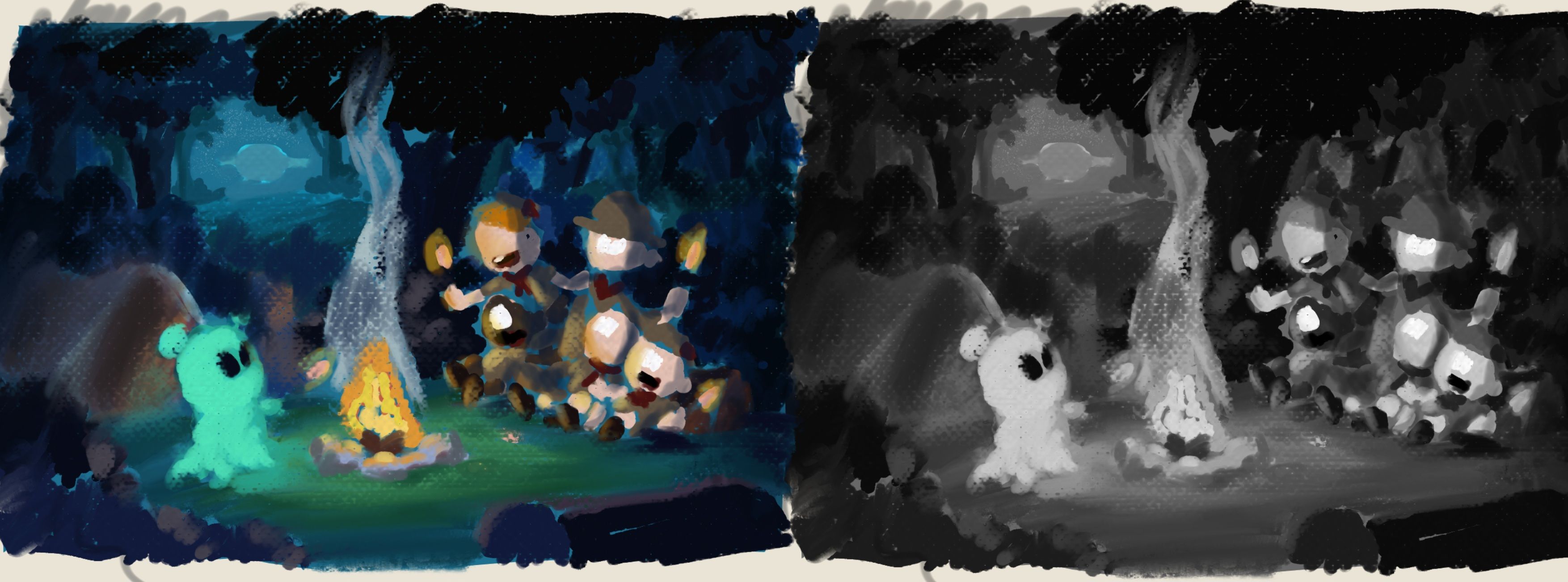 con todos mis elementos definidos procedí a realizar los estudios de tono y color para asegurarme de que el mood de su ilustración era el adecuado.