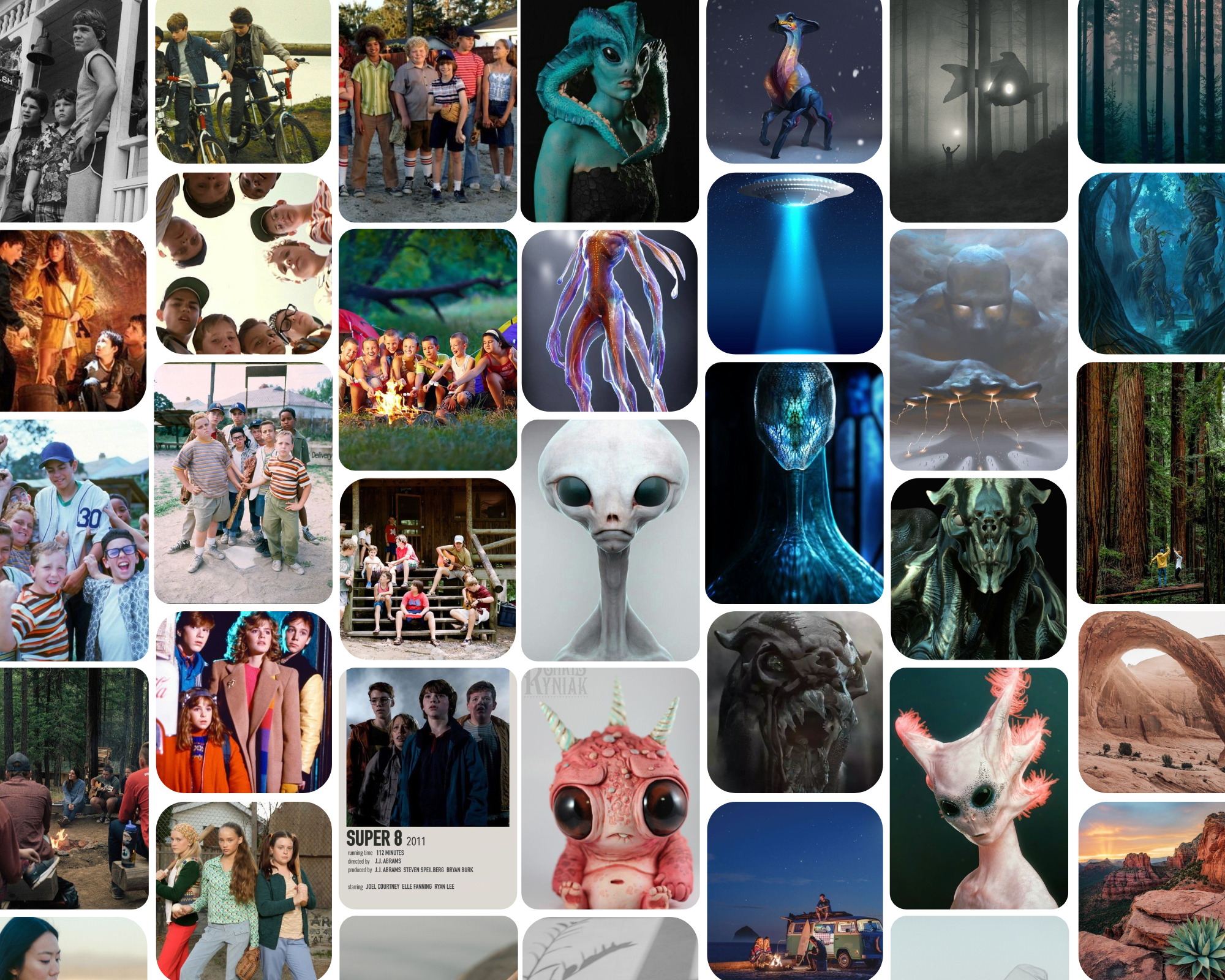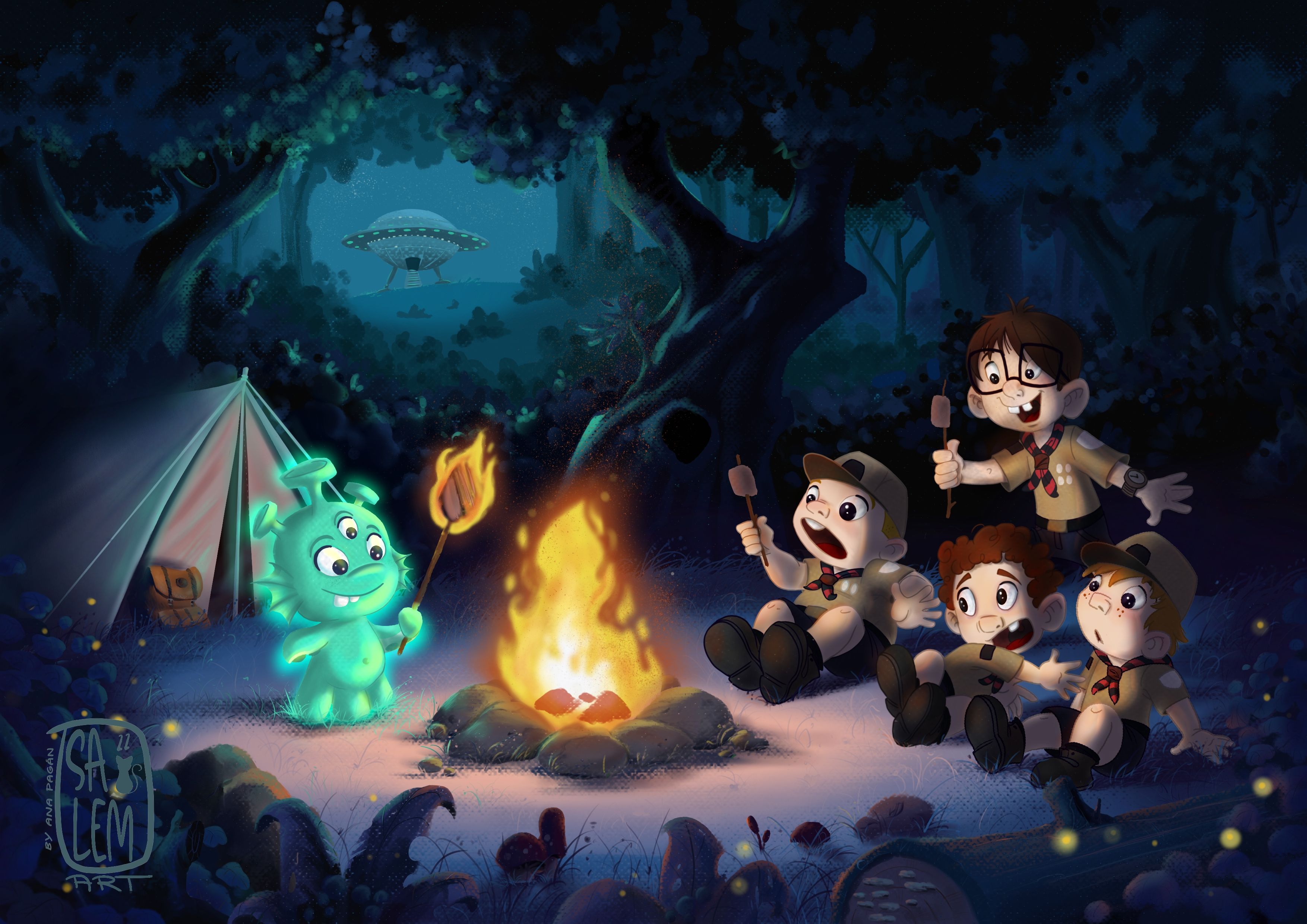 Adoro le avventure, e le più belle accadono quando si è bambini. Volevo ricreare quel momento speciale con questa illustrazione, "Incontra ET". Mi sono ispirato ad alcuni dei film più iconici della mia infanzia – ET, I Goonies e Super 8 – e a libri come "Famosi Cinque" e "I Tre Investigatori".