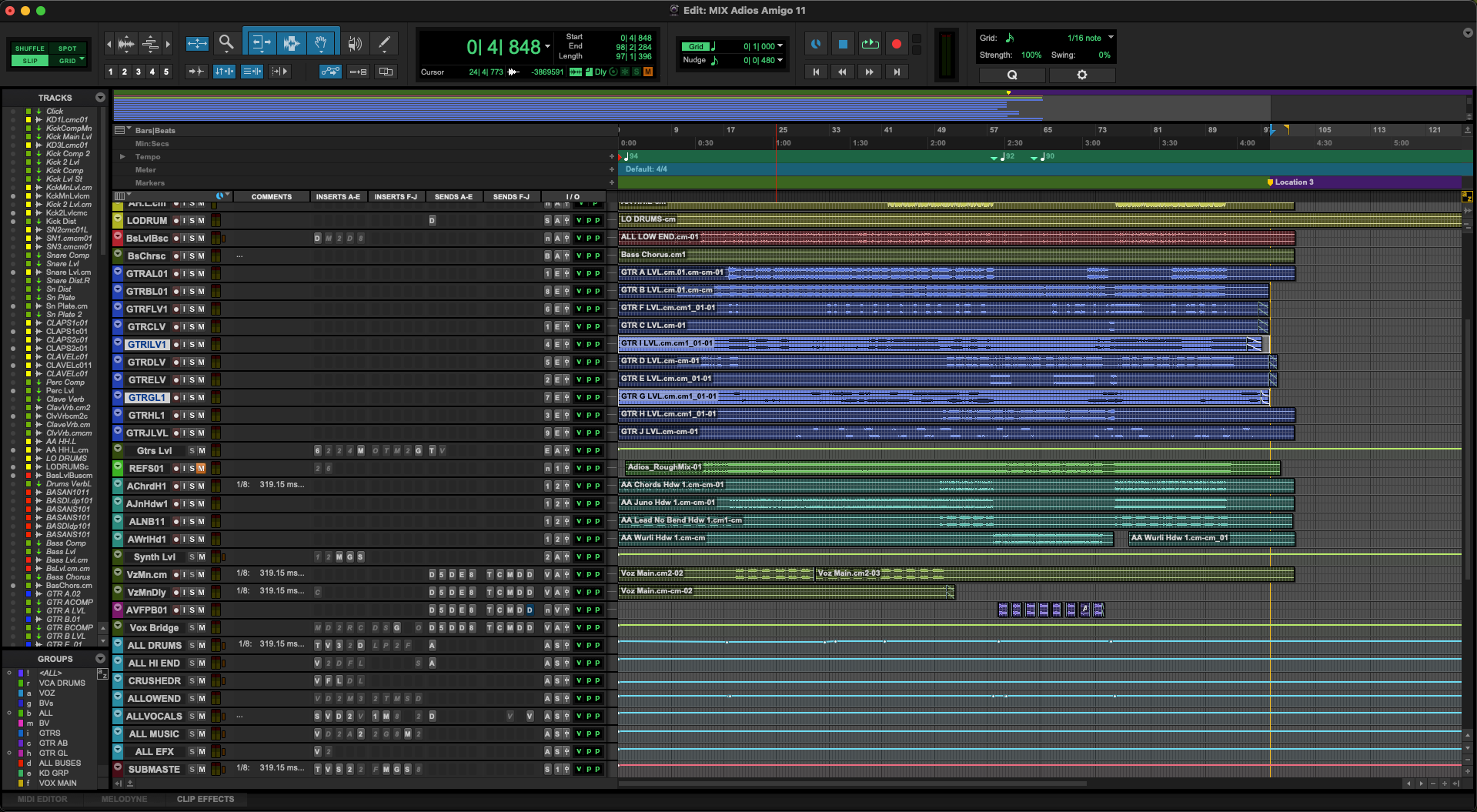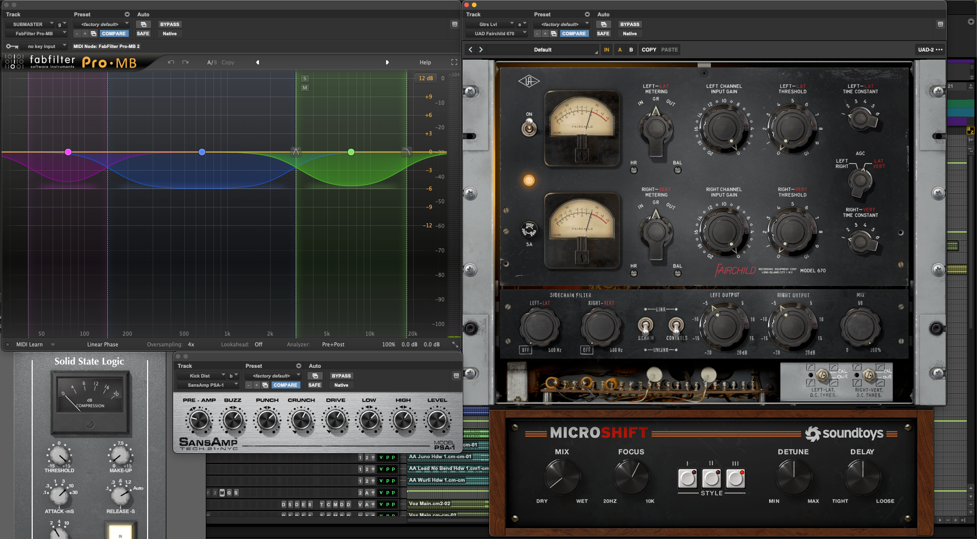 1. Mixing took place in Pro Tools, beginning with careful gain staging and a clean session structure based on grouped stem folders (bass, synths, lead vocals, background vocals, FX). A static balance was achieved using only volume and panning to establish the spatial and emotional foundation of the track, followed by early mixbus processing for cohesion, warmth, and dynamic glue.