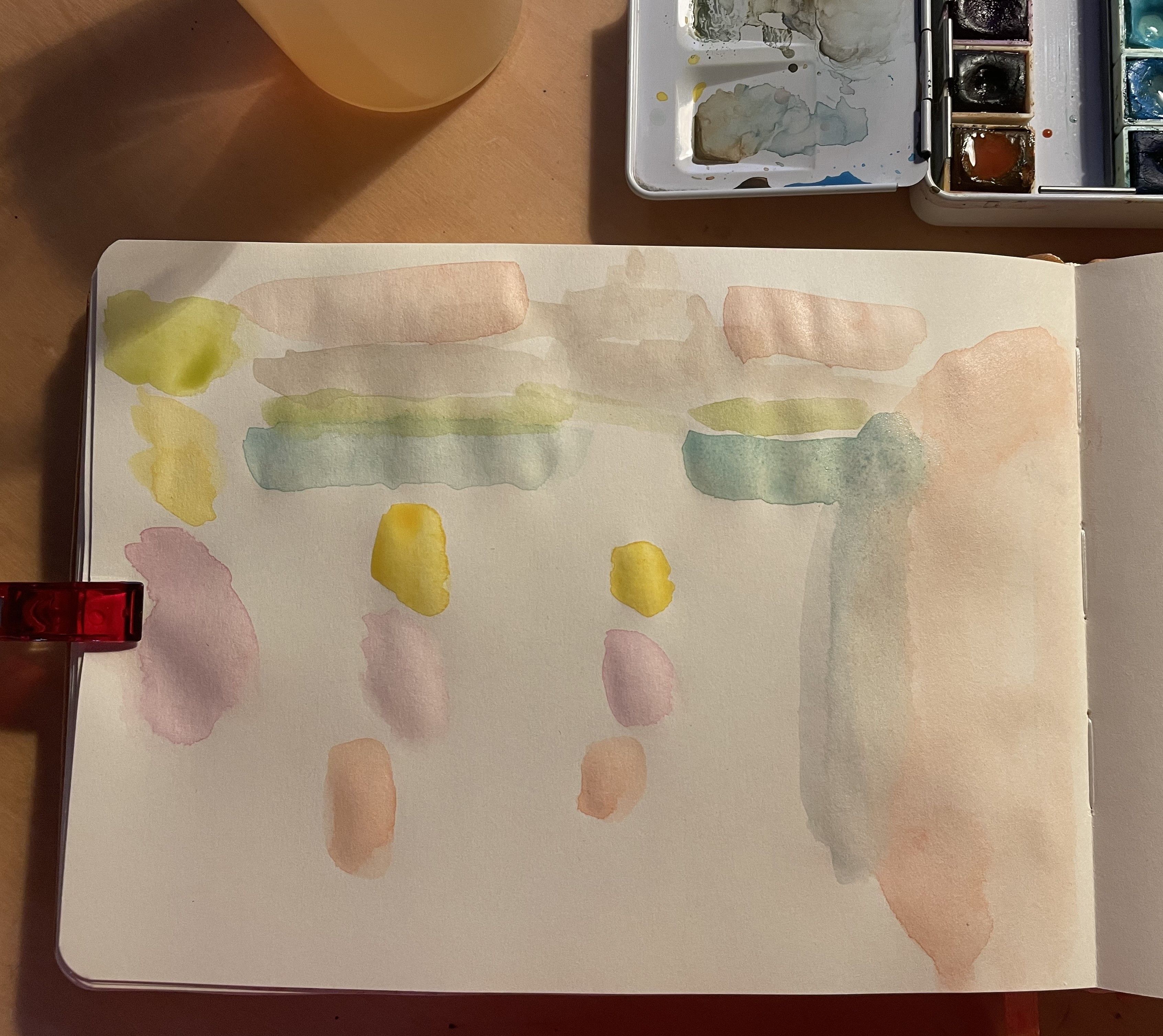 Begonnen habe ich dann mit dem Anlegen von farbigen Flächen (Aquarell).