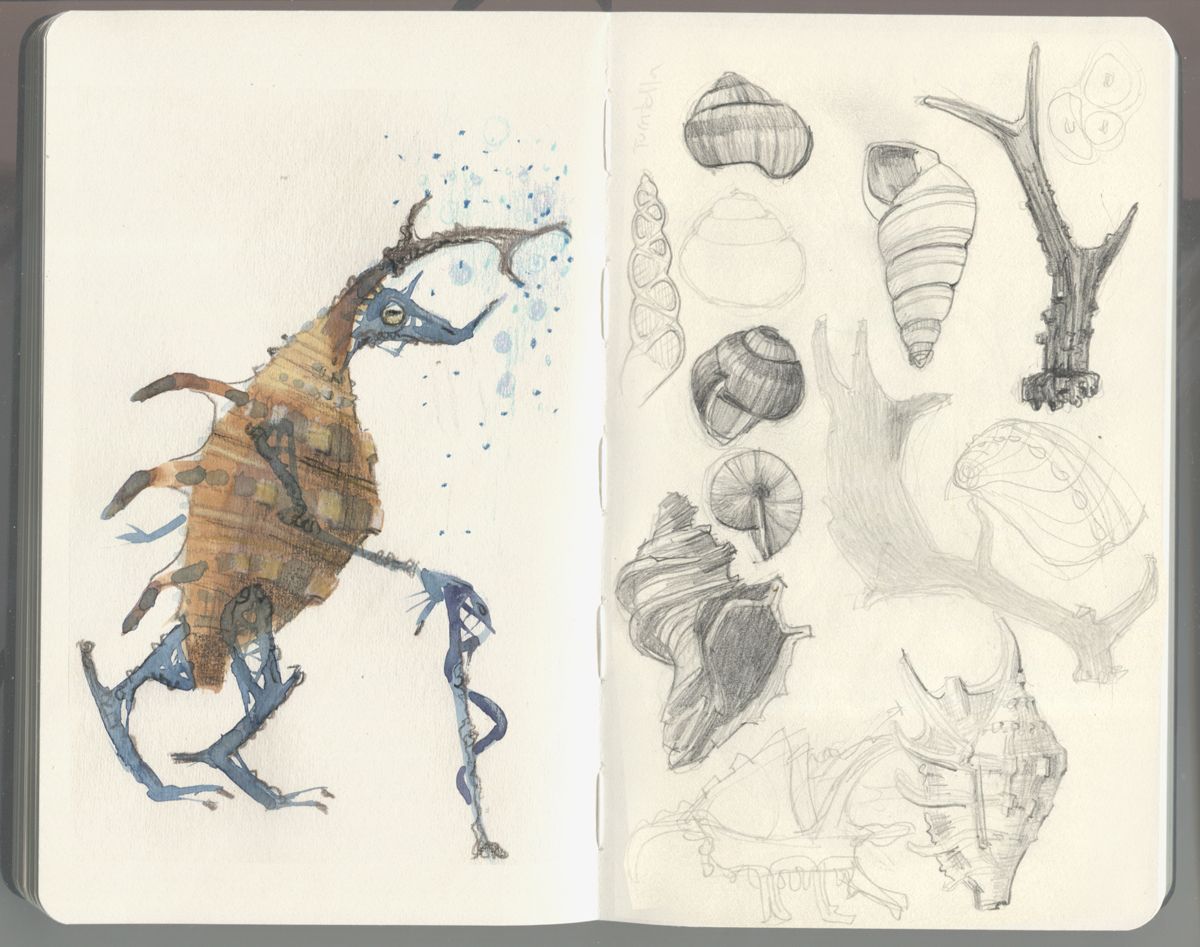 I did four creatures: plant based, fungus and lichen based, bones and shell based, as well as the creature of my home from stuff I found in the house. I also did most of the exercises suggested.