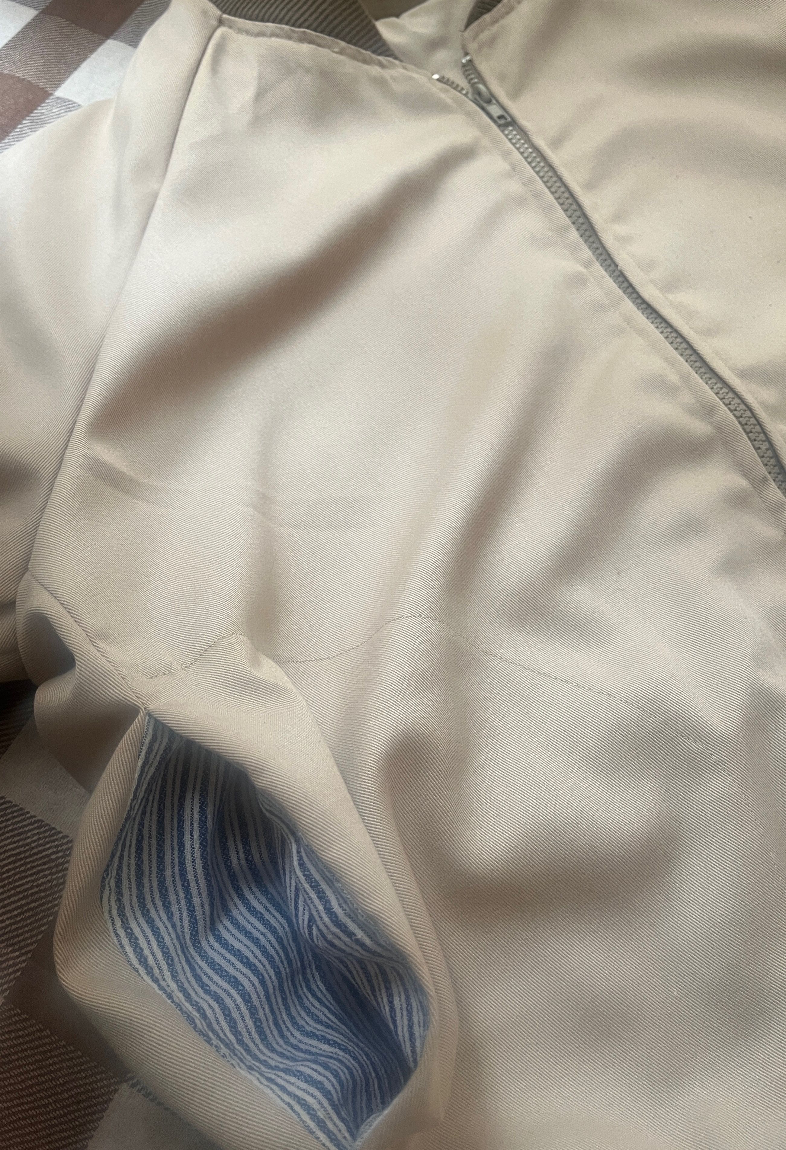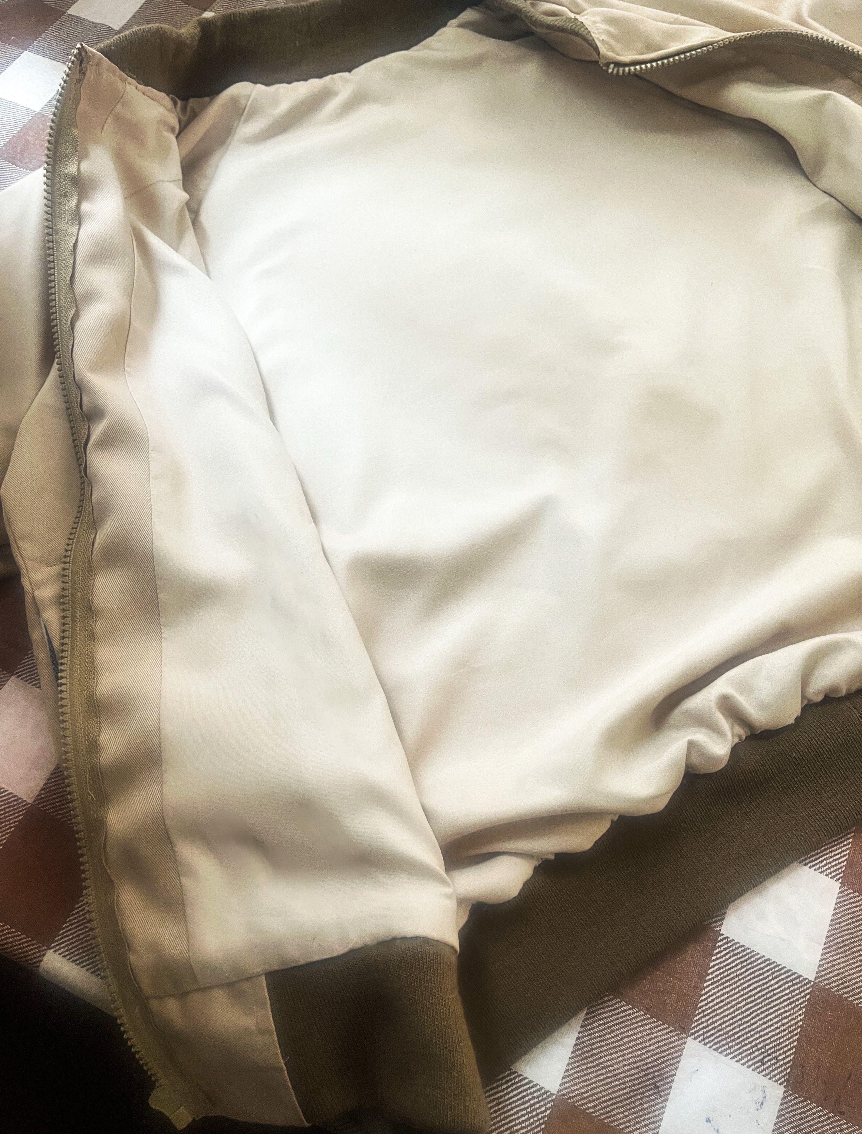 Mi bomber jacket es un estilo sobró y algo clásico bastante versátil para vestir lo cual se expresa en los colores neutros de la misma y los materiales.