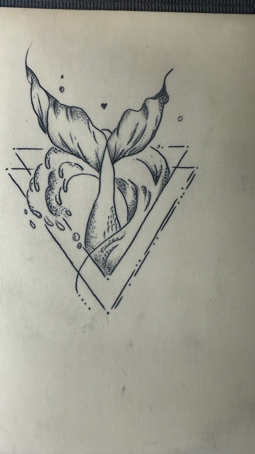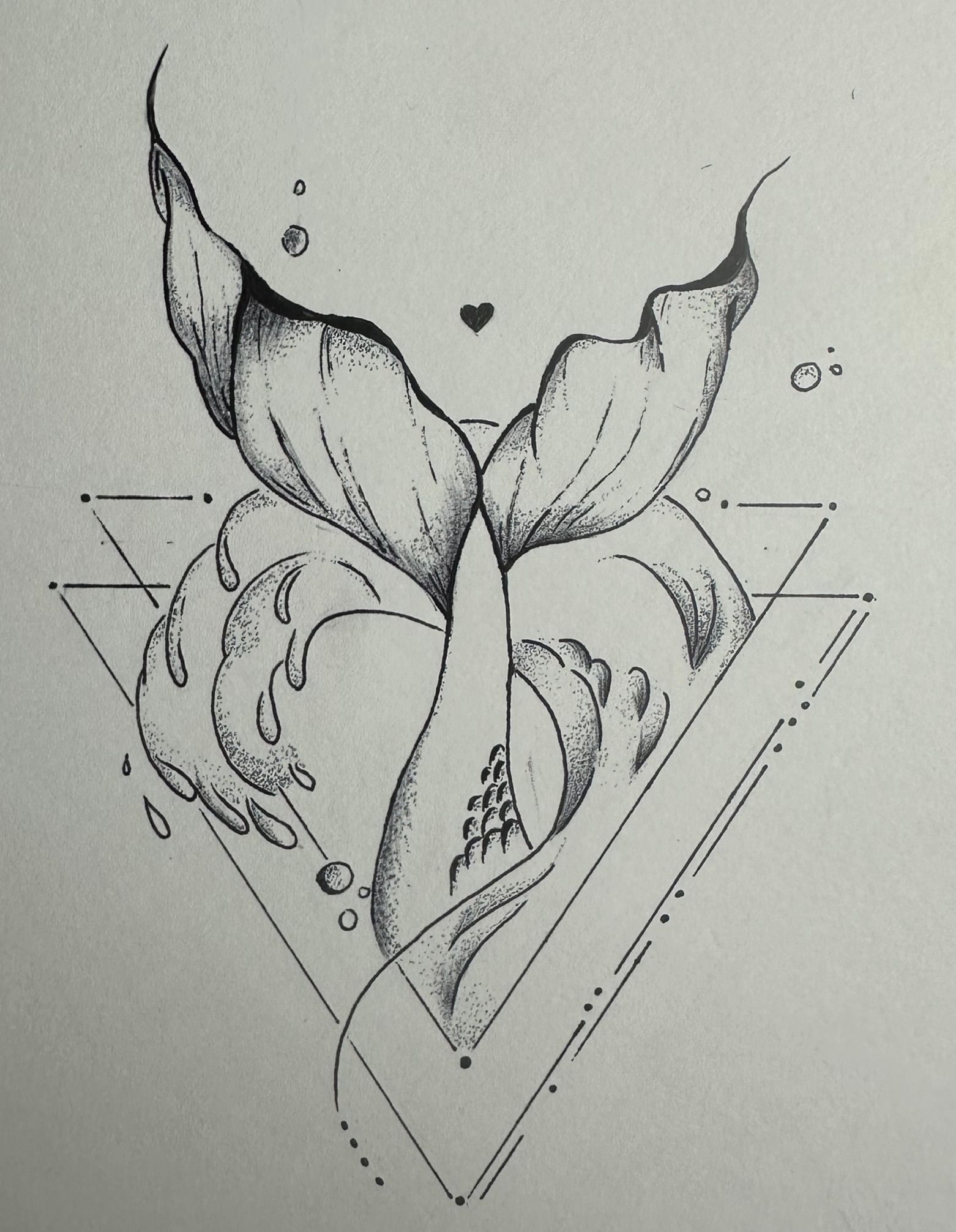 “Alchimia delle Onde” è un’opera che unisce la fluidità dell’acqua con la precisione della geometria. La coda di sirena, simbolo di mito e mistero, si intreccia a linee e segni ispirati al codice morse, creando un linguaggio segreto che invita alla scoperta. Al centro, un cuore diventa sigillo d’equilibrio: razionalità e istinto, visibile e invisibile, terra e mare. Un viaggio simbolico che trasforma l’elemento acqua in poesia visiva.