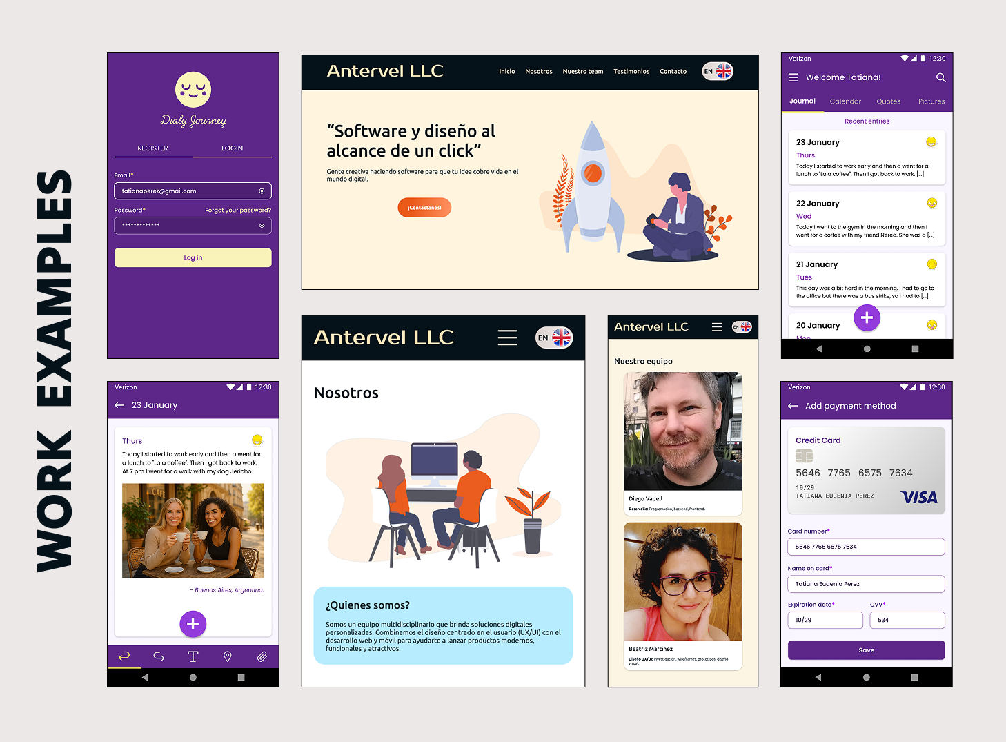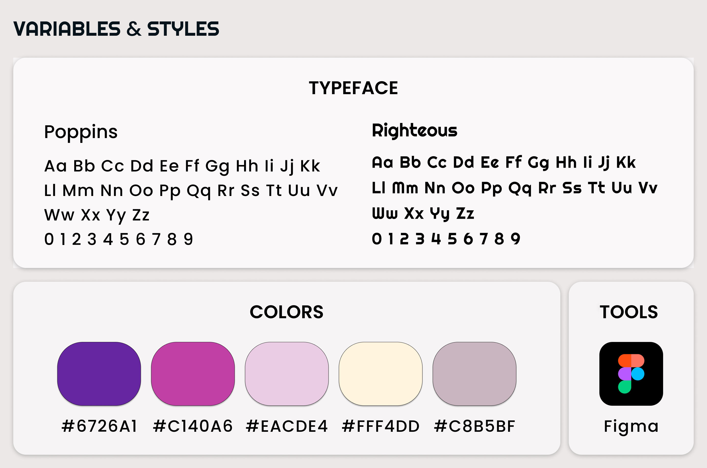 Primero desarrollé un tablero de humor para buscar un estilo que me represente como diseñadora, si bien he trabajado en diversos proyectos. Para este tablero me inspiré especialmente en el estilo gráfico de la escuela Bauhaus. Eligiendo tonalidades púrpuras y anaranjadas.