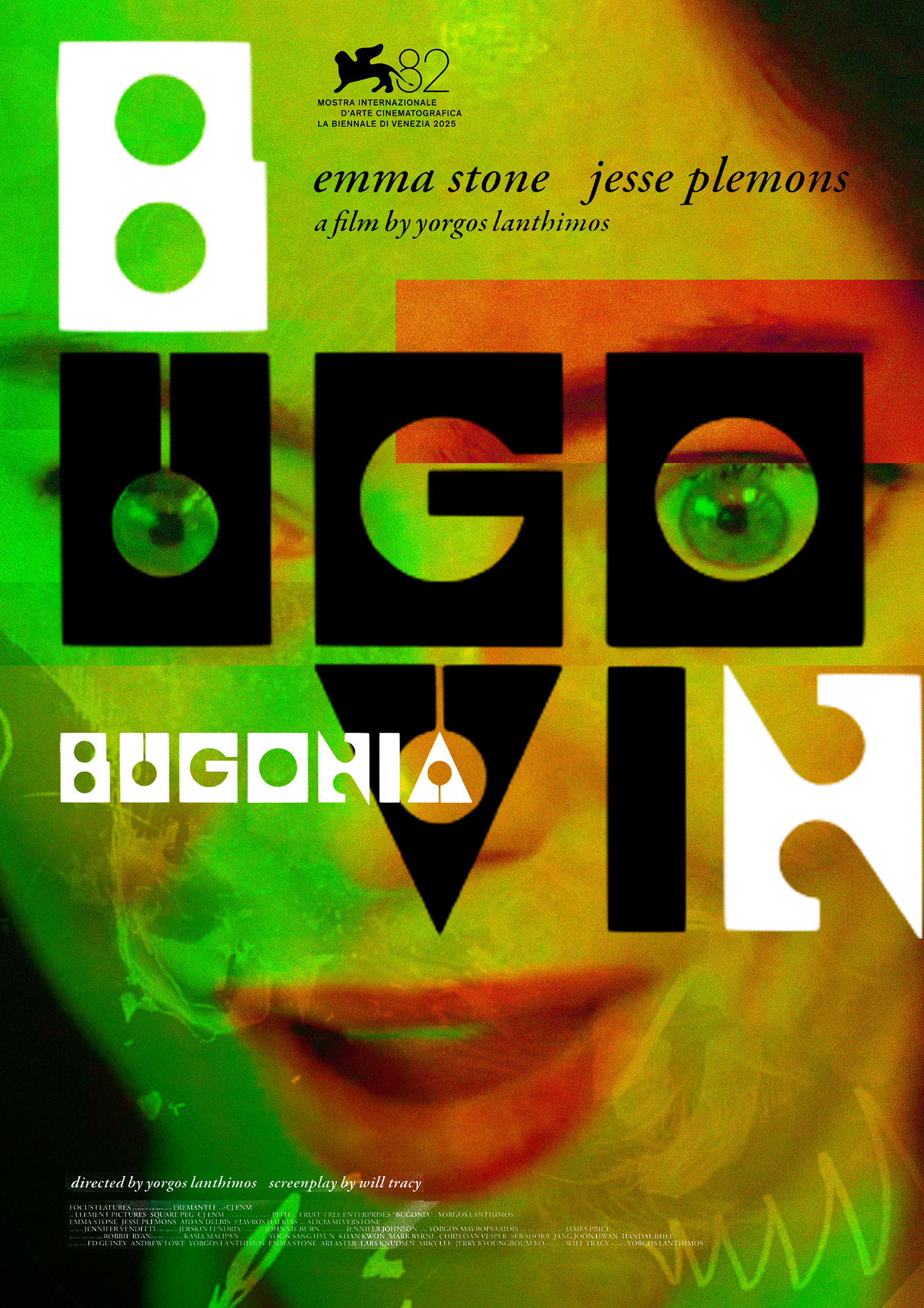 Um poster para filme Bugonia, de 2025. Inspirado pelo filme, pelo diretor Yorgos Lanthimos e Emma Stone.