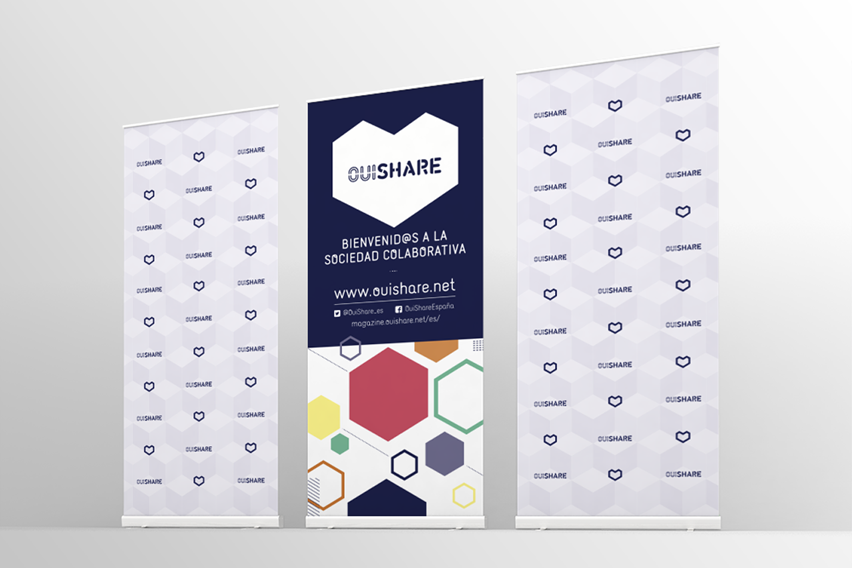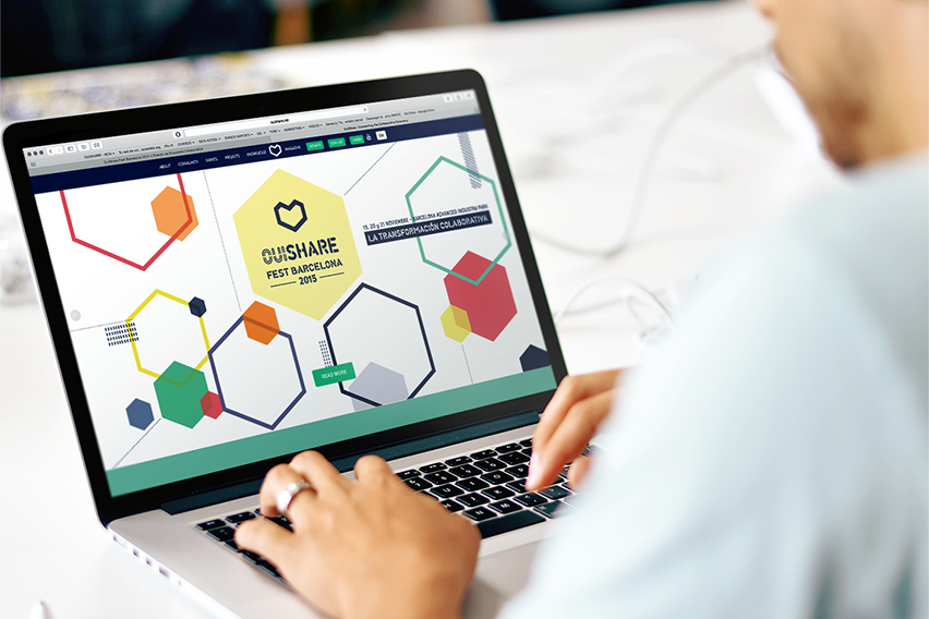 Creación y diseño de la identidad visual para OuiShare Fest Barcelona 2015, el primer evento en lengua castellana dedicado a la economía colaborativa.