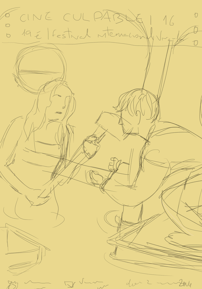 Illustration for the poster, schedule and other applications in CINECULPABLE, an international shortfilm festival in Vila-real, Spain. The image shows a representative scene of the film Titanic, that has the same years than the festival, and the handcuffs are a representative image of the festival, so it makes it great!