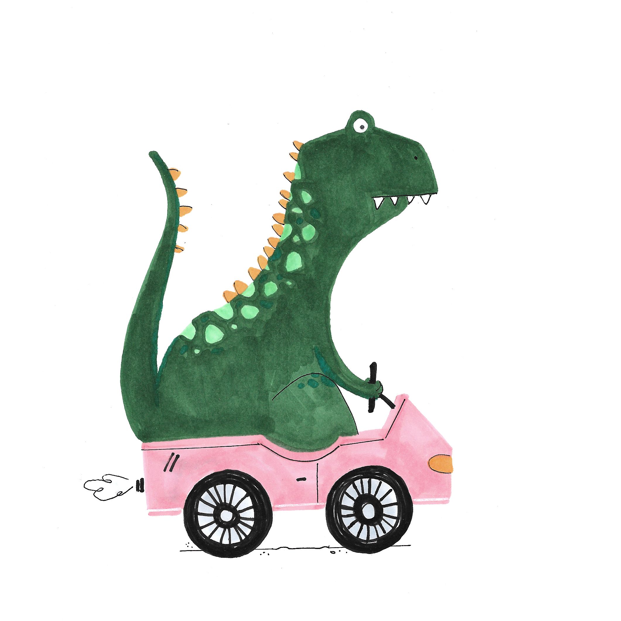 DINOSAURIO + RUEDA (a pesar de sus brazitos cortos, los t-rex también pueden conducir)