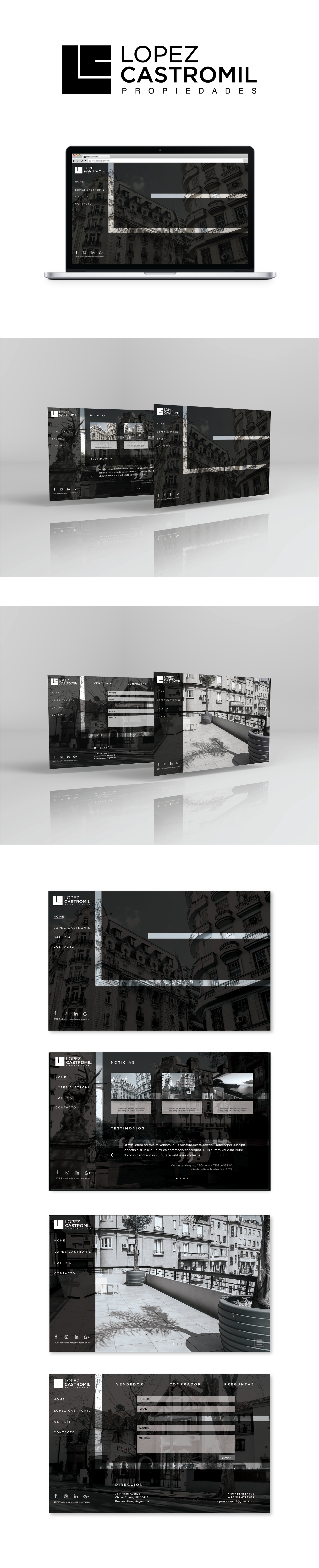 LOPEZ CASTROMIL PROPIEDADES es una inmobiliaria argentina que se caracteriza por propiedades lujosas, de calidad, solo aptas para la élite, por ende se buscó transmitir esa sensación de lujo, status, dinero y modernidad a su web.