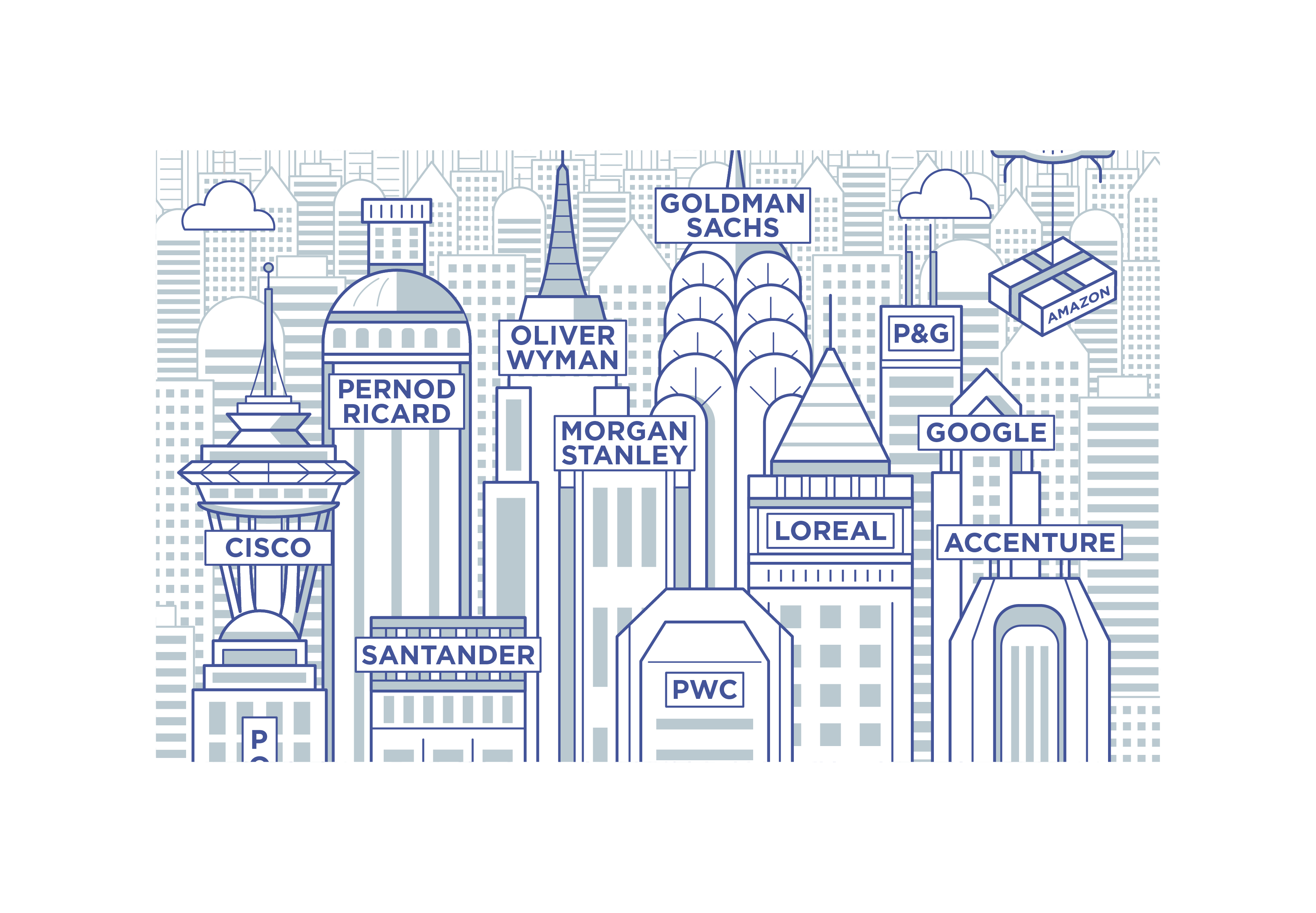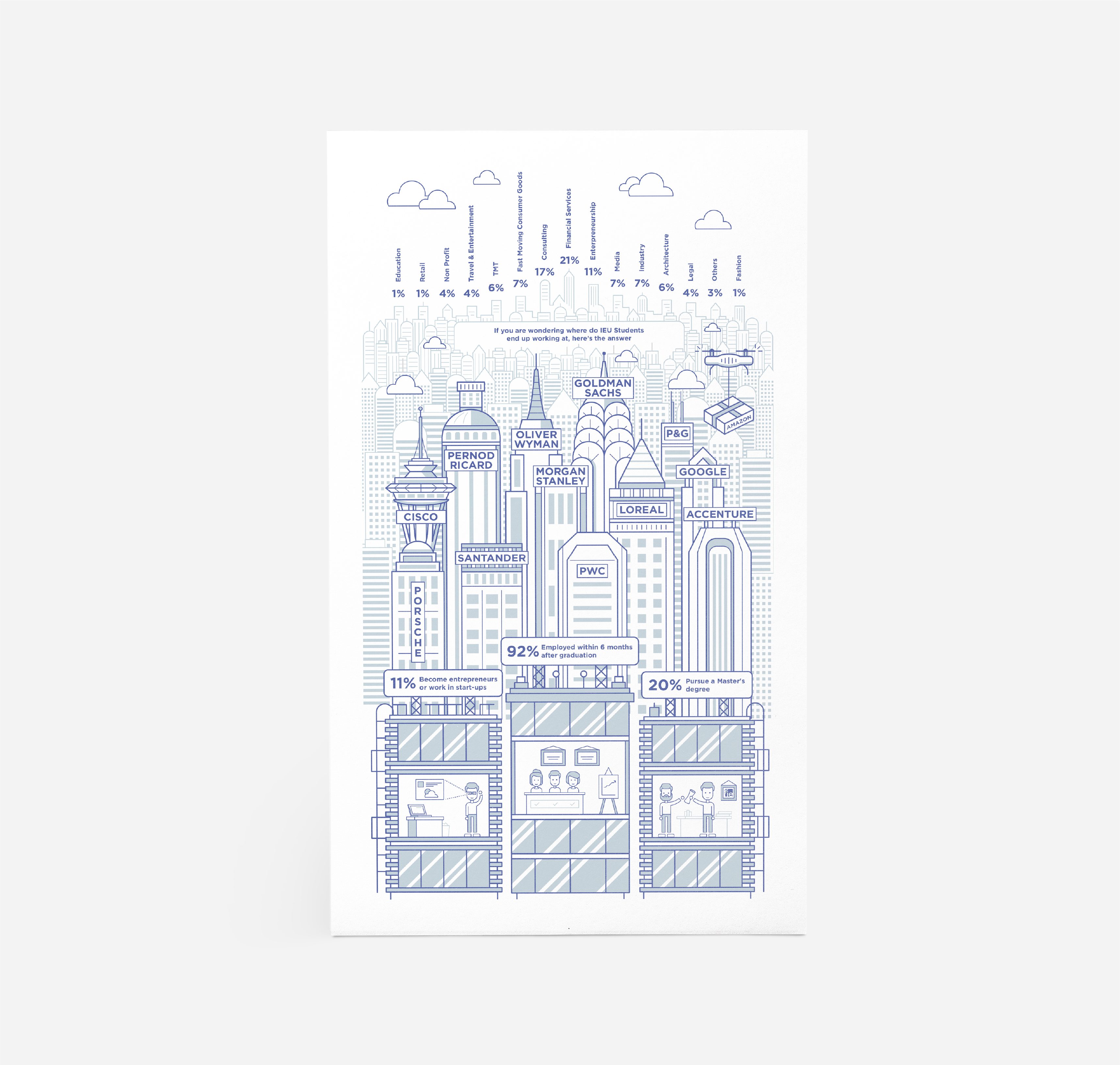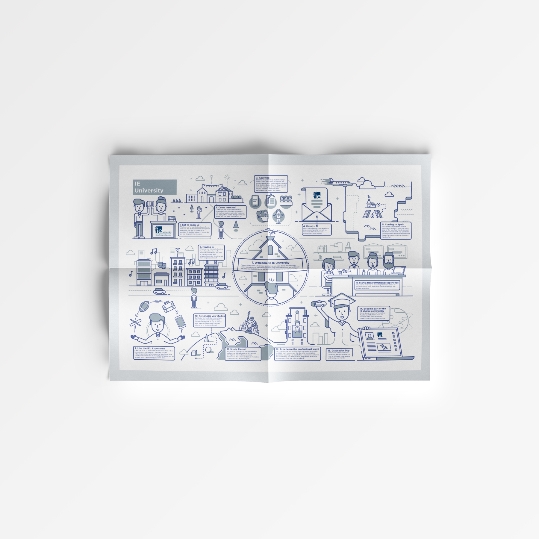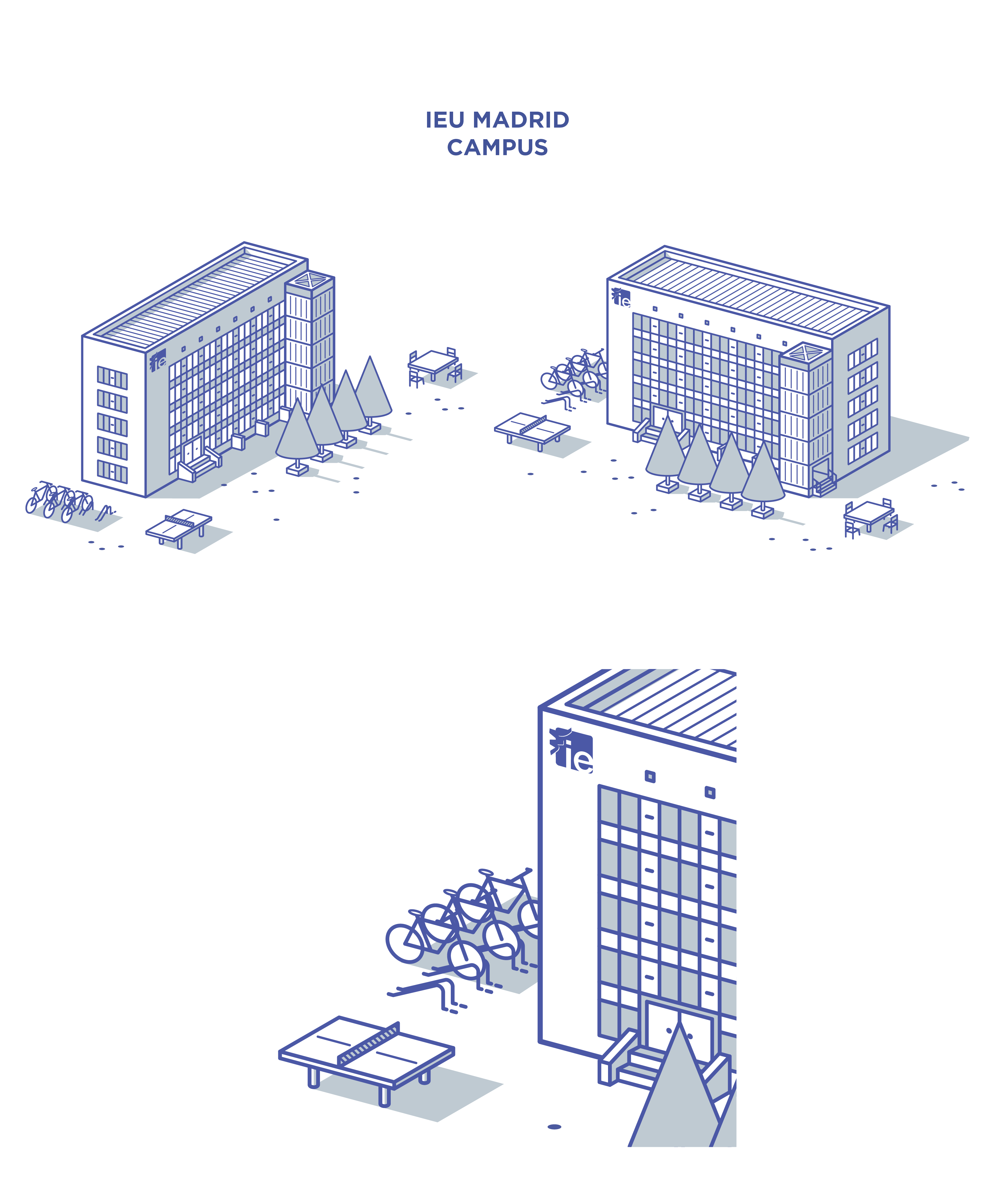En el año 2016 y parte de 2017 tuve la fortuna de participar como ilustrador asistente en este proyecto encabezado y dirigido por Borja Acosta de Vizcaíno (@borjaadv). Realicé infografías, ilustraciones y algunos juegos iconográficos. Trabajamos junto a Studio Banana y el objetivo era transmitir información sobre sus grados y cursos de una forma clara y sencilla.