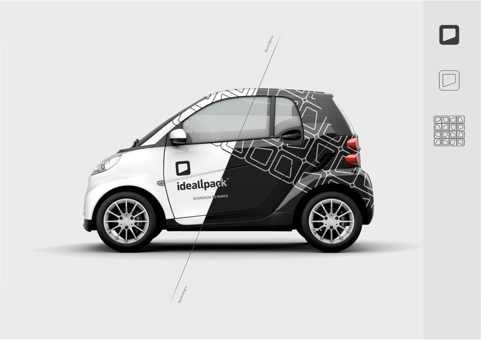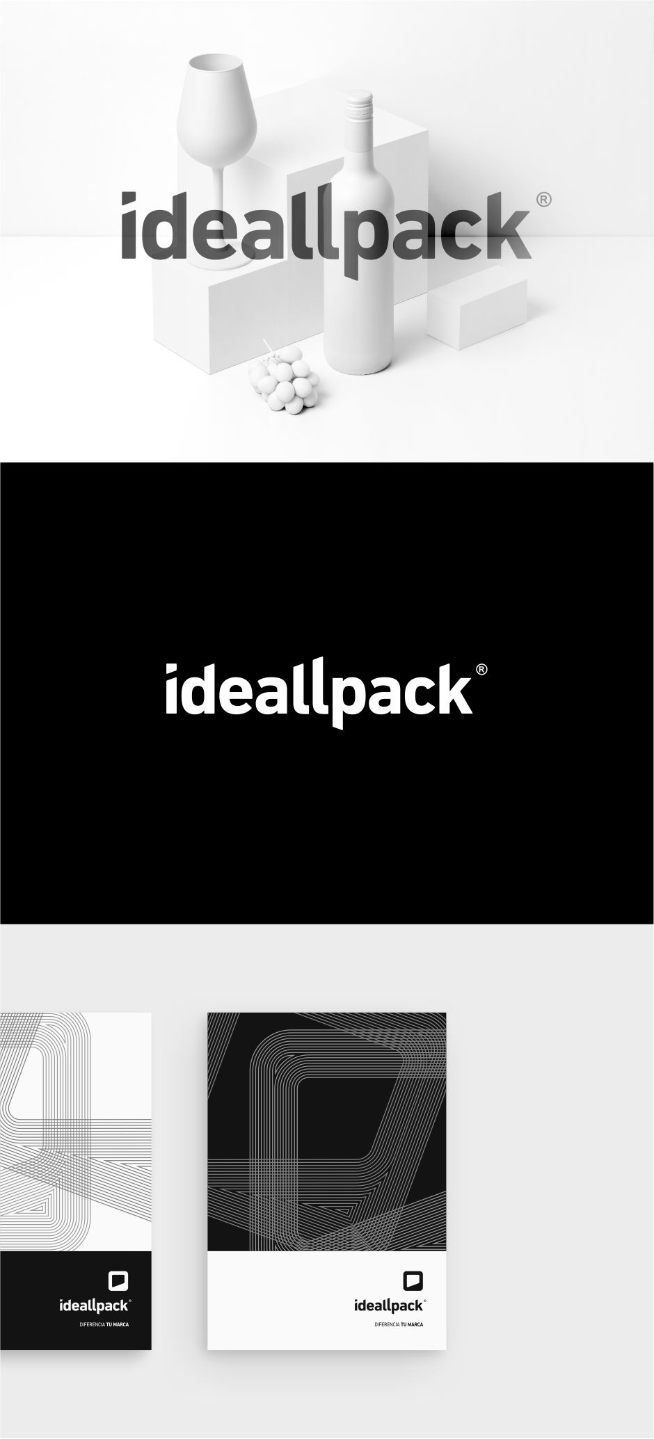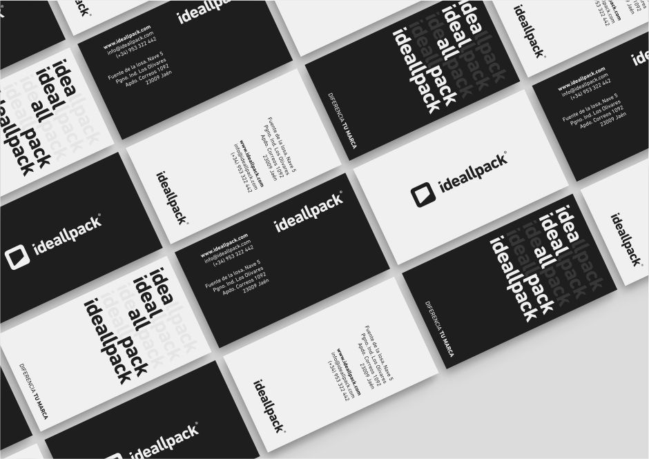 Il logo progettato per Ideallpack doveva essere leggibile, serio ma empatico, definendo chiaramente un'azienda giovane, professionale, solida e votata alla qualità. Poiché il suo servizio principale continuava a essere il packaging, le estremità di alcune lettere terminano in diagonale per creare un effetto prospettico. Il logotipo, creato dal punto della "i", forma una forma compatta e semplice, facilmente associabile al marchio, che ricorda l'apertura di un contenitore o di un oggetto.