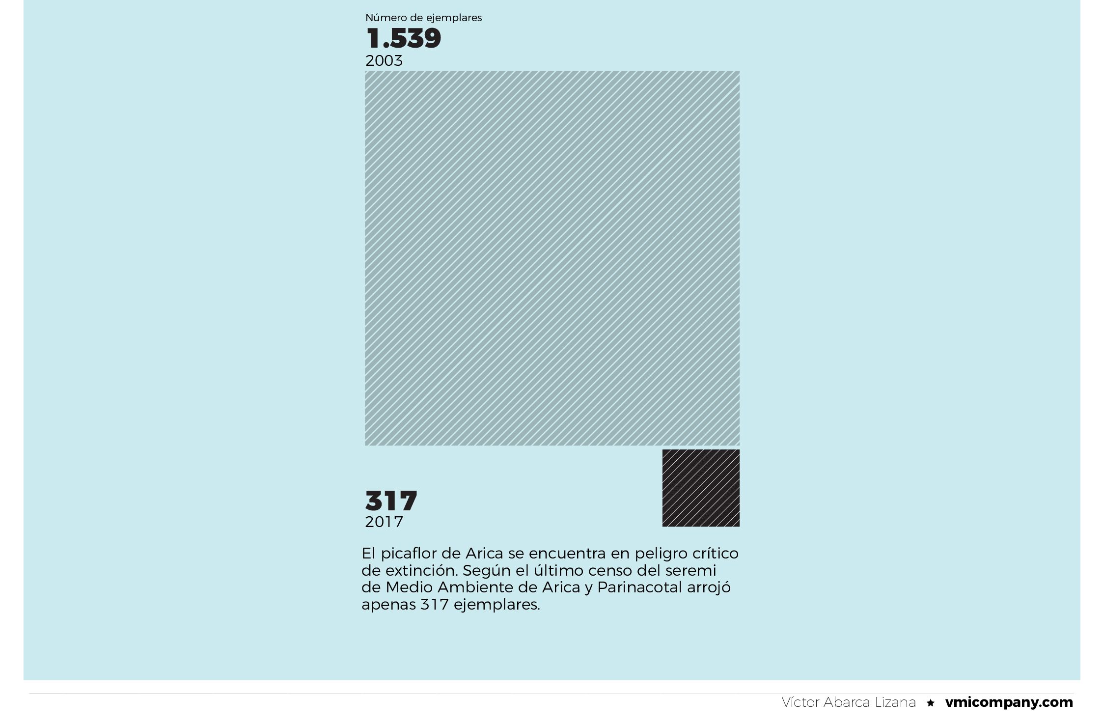 Hoy después de 15 años, según el último censo del seremi de Medio Ambiente de Arica y Parinacota, el número total de especies es de 317, lo que pone al ave más pequeña de Chile en peligro de extinción.