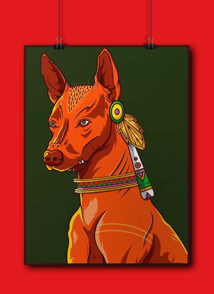 Realice este cartel en honor a este bello animal, soy mexicano y desde pequeño sentí atracción a los xoloitzcuintles por su rareza, ya que son perros sin pelo y carecen de una dentadura ordinaria como el resto de canes; son perros dóciles y representan un pedazo de la basta cultura que resguarda mi tierra y mi gente.