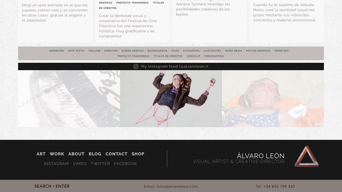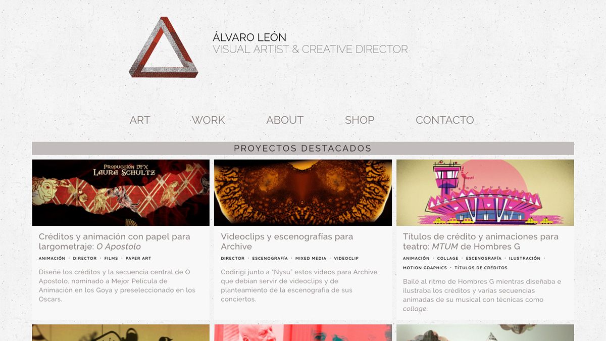 Álvaro León es un artista polifacético que trabaja a nivel internacional, para el que tuvimos la oportunidad de rediseñar su página web, en colaboración con Beltrán Rengifo.