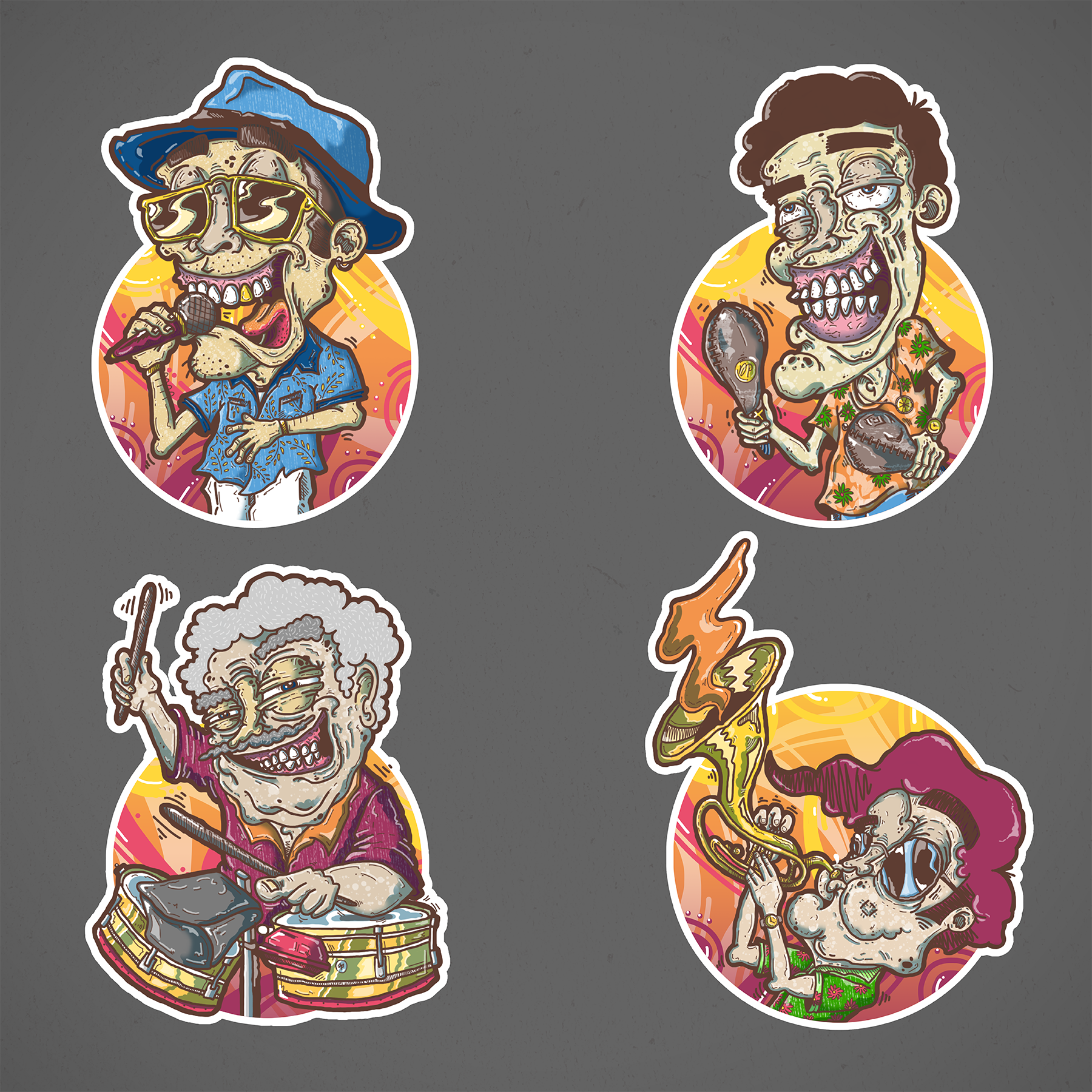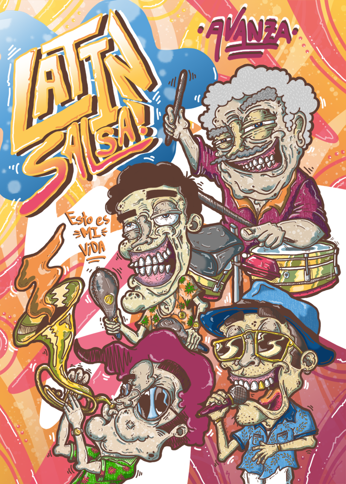 LATIN SALSA nace de dos pasiones presentes en mi vida: la ilustración y la salsa; gracias a la oportunidad brindada en este excelente curso pude acoplar estas dos pasiones, me basé en una orquesta tomando como referencia 4 personajes principales los cuales me llamaron mucho la atención para este proyecto.