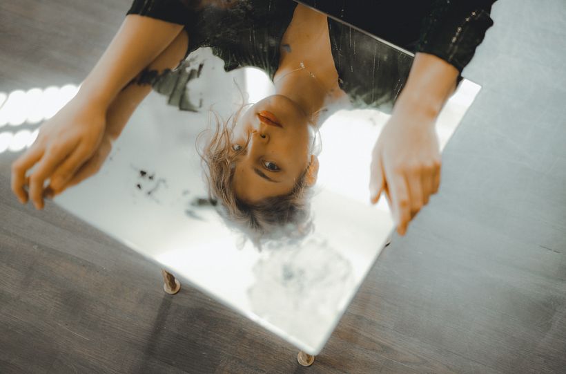 Quello dello specchio mi ha colpito. Quello dello specchio dice subito. Dice un sacco di cose. Uno. Non sono carina? Due. Sono stato rifiutato? Tre. Qualcuno può venire a trovarmi, sono qui, non riesci a vedere il mio riflesso, penso che sia reale. Quattro. Torna di nuovo a uno. E cinque. Mi sento così freddo, maltrattato e vuoto, affamato e senza protezione, gli uomini sono così dolorosi che è irreale e distruttivo che la mia fiamma sta per spegnersi ma è ancora lì nel mio riflesso.