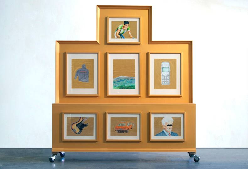 Conviene entonces advertir la melancolía inherente en las imágenes de nuestro presente, el oculto anhelo con que nos salen al encuentro sin que consigamos retenerlas. Algo de esa melancolía capta Carlos Aquilué con su obra Retablo. Aunque sin dramatismo, con una levedad y humorismo de filiación pop, el autor hace inventario de algunos iconos notables de su biografía, disponiéndolos en una estructura de reminiscencias litúrgicas y así, jugando a restituirles la condición de durabilidad ante nuestra mirada.