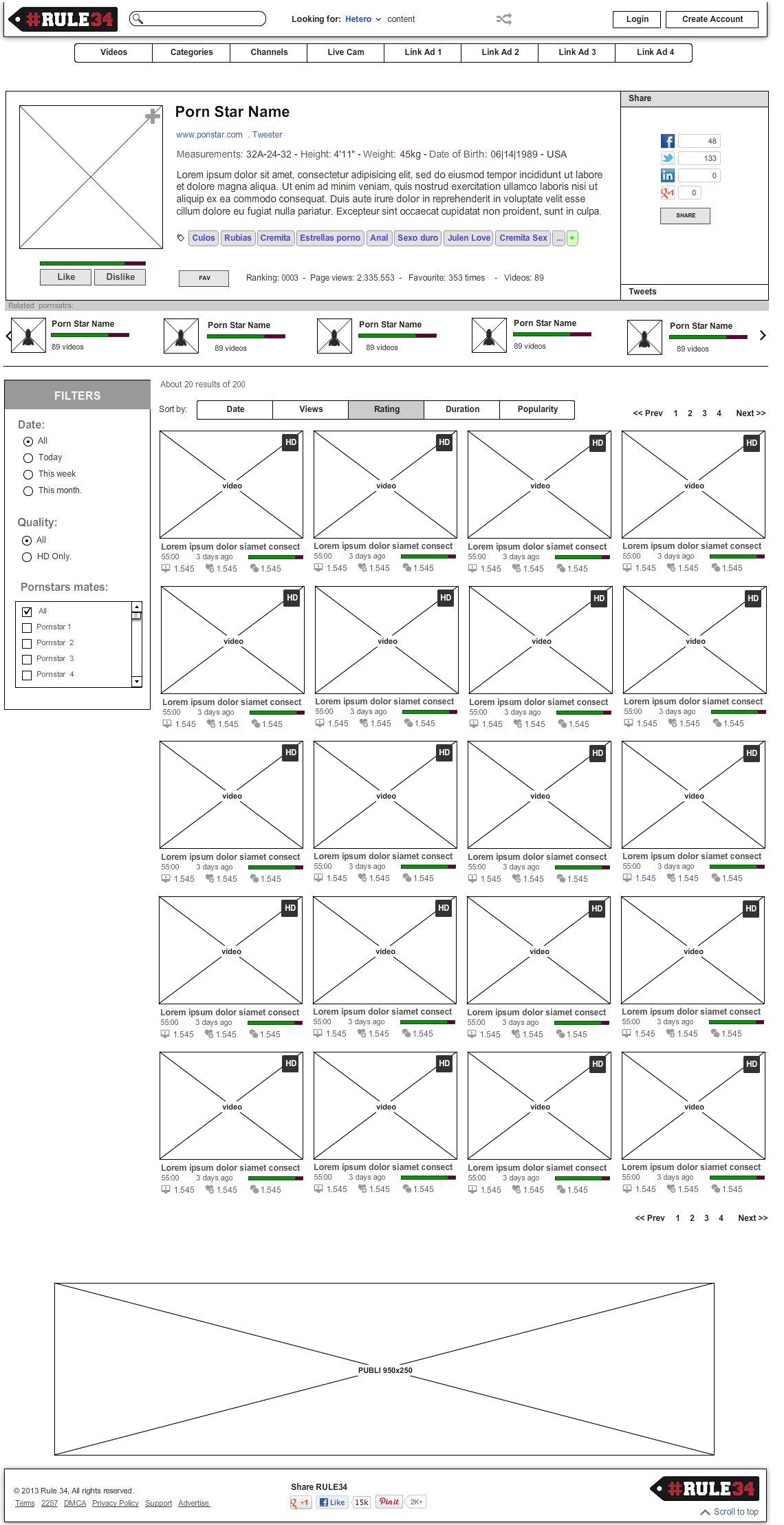 Wireframe de página de Porn-star: