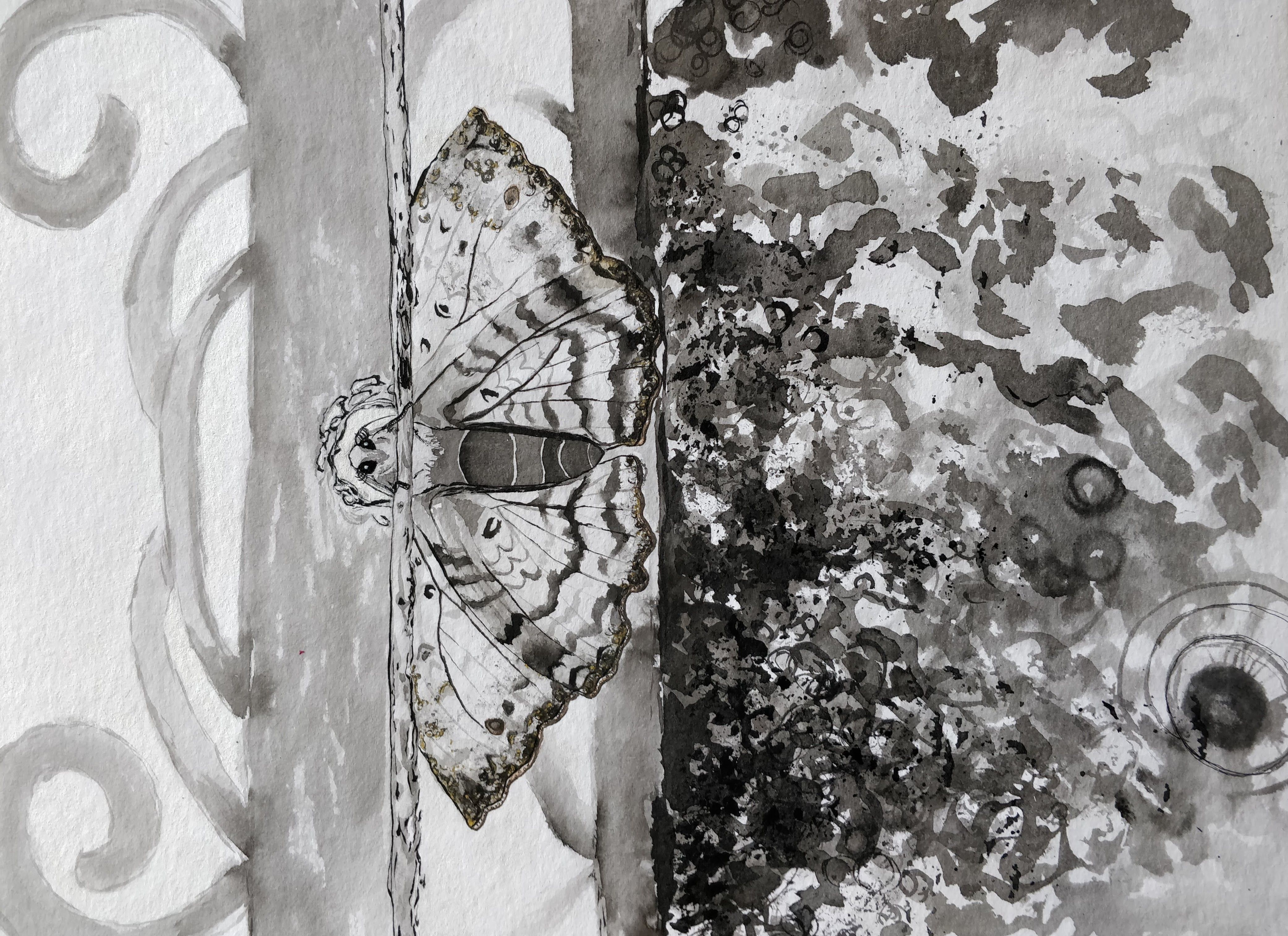 Questo è veramente forte! Adoro il fatto che tu possa vedere la faccia della falena, le conferisce un tale carattere. Bel contrasto anche tra le forme dettagliate e più semplici!