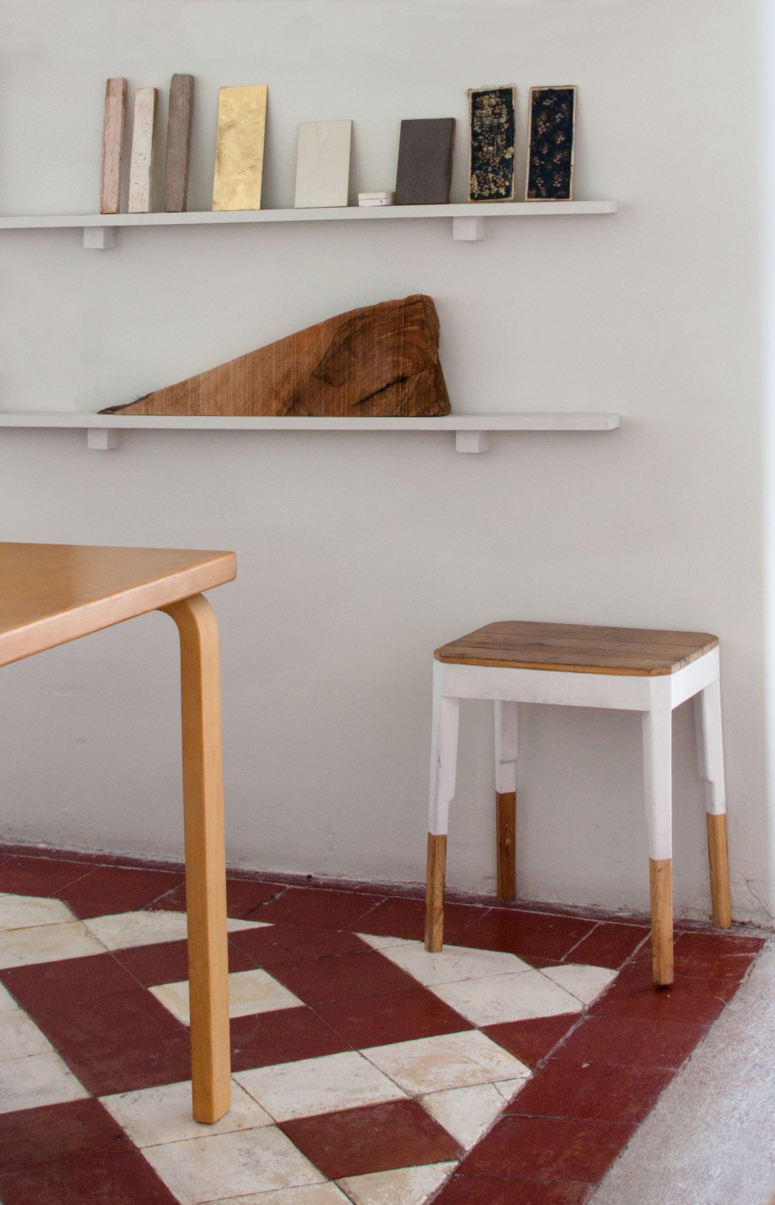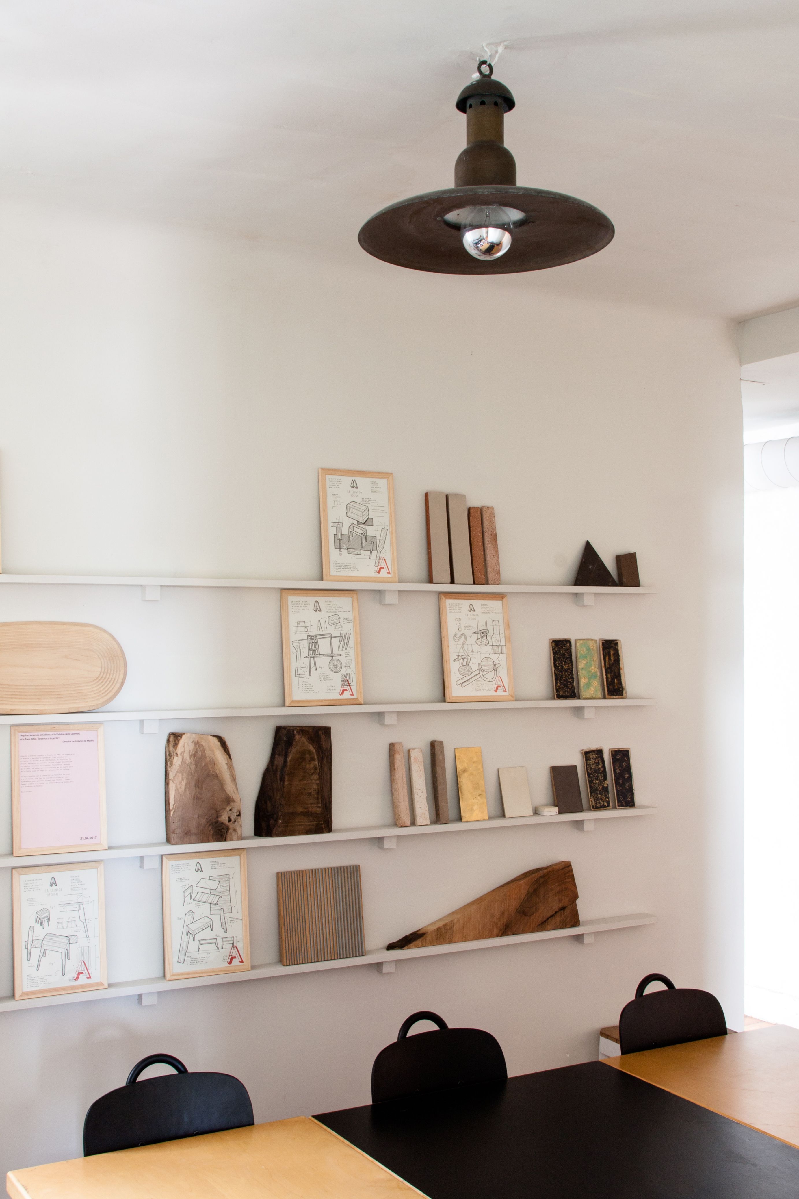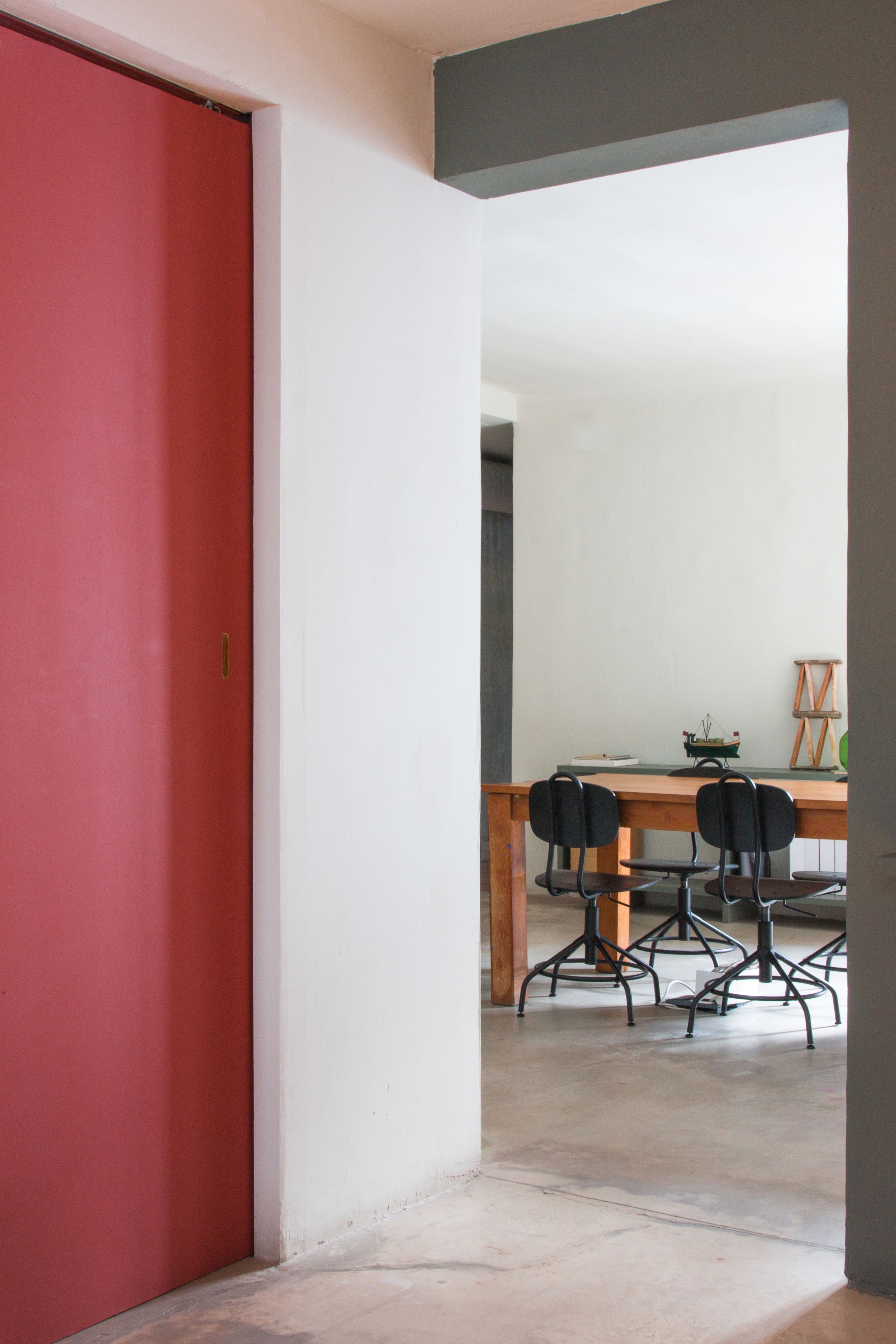 The materials room and the living room, characterized by an original fireplace, represent the central elements; spaces that change over time for the realization of mockups and prototypes, thus becoming a full-scale model in the which clients and designers work with four hands.