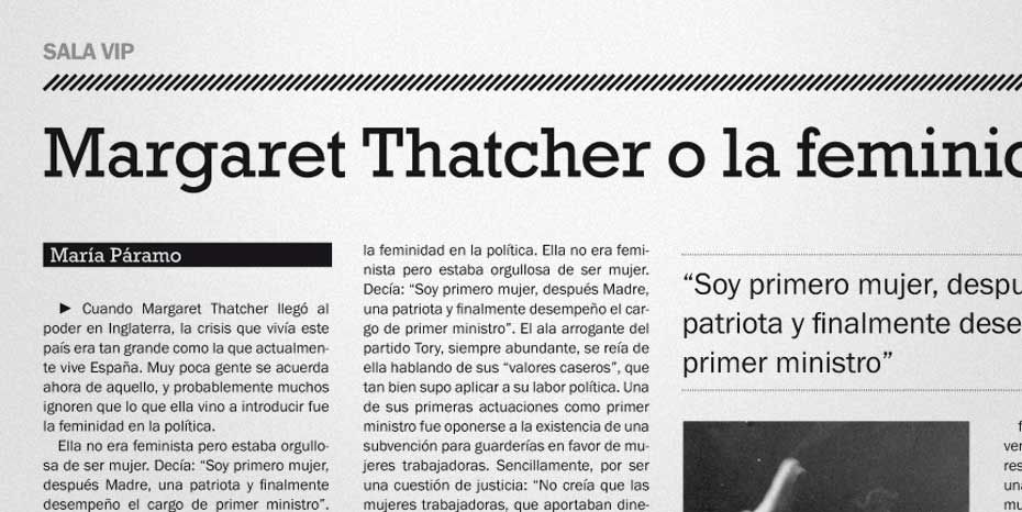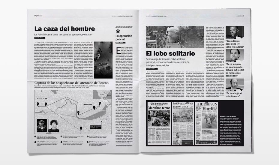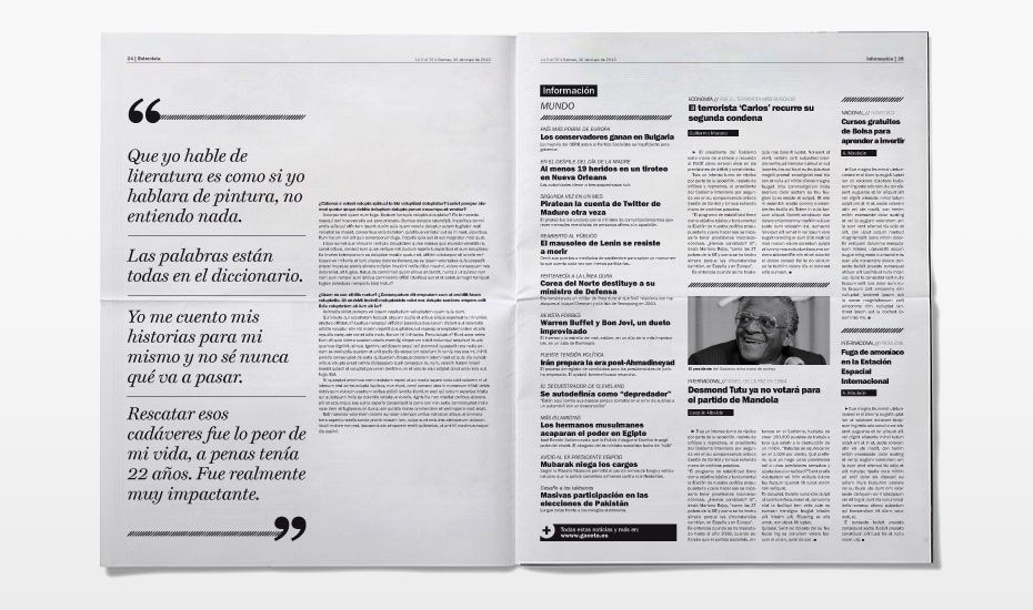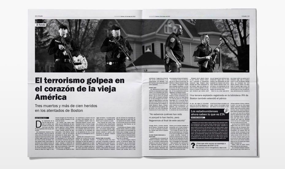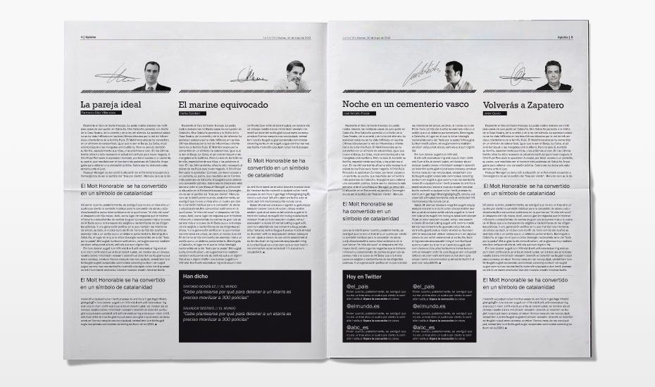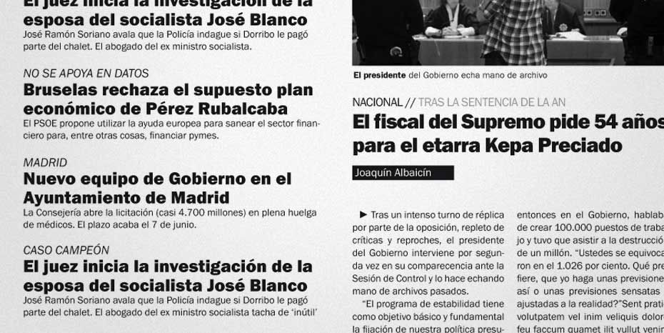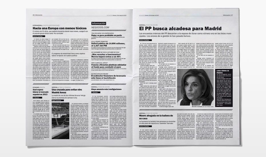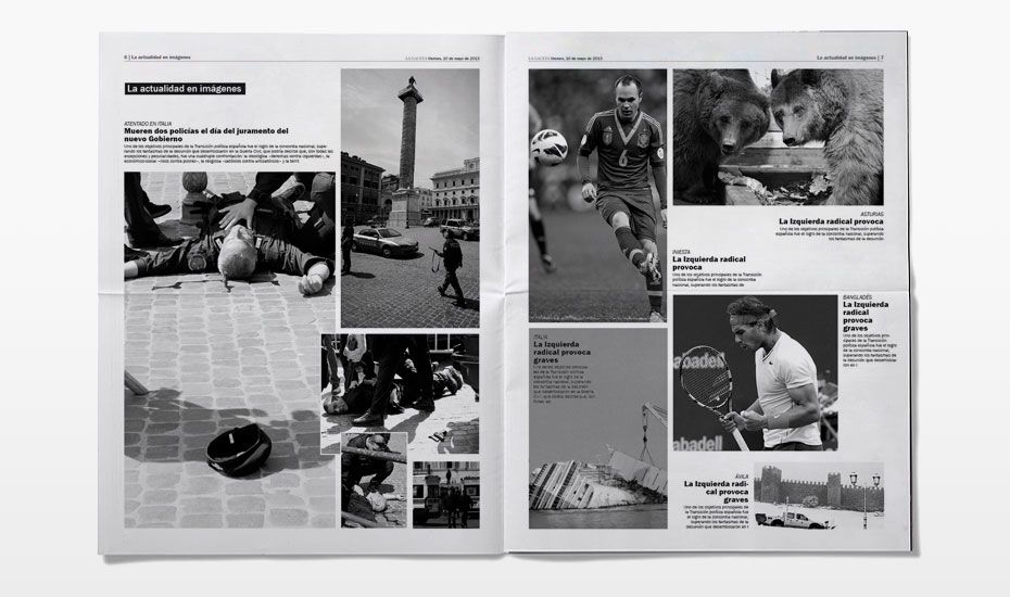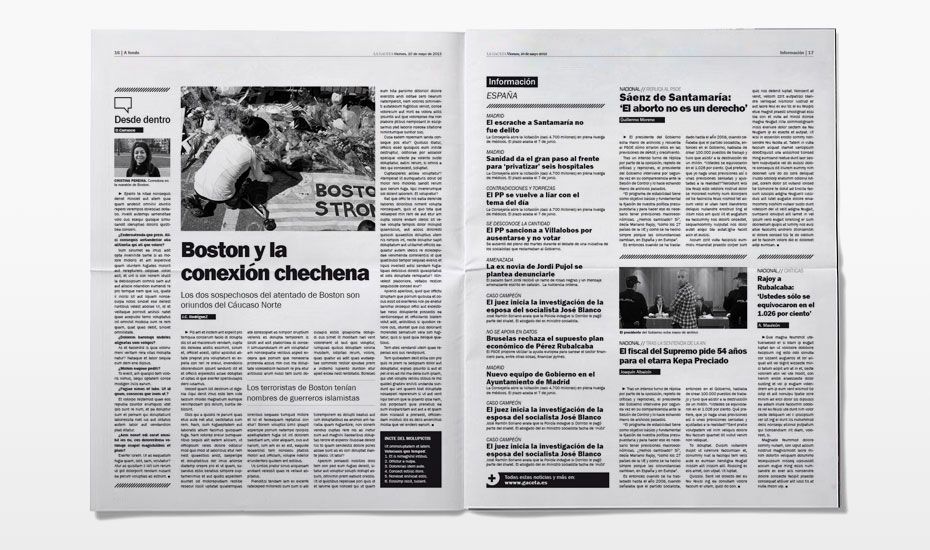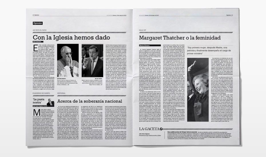 Rediseño del periódico La Gaceta. Se buscaba una nueva imagen que despuntara dentro de la que la prensa nos tiene habitualmente acostumbrados. Siguiendo el requisito de que el interior fuese en blanco y negro (salvo las páginas de publicidad, deportes y comunicación) desarrollamos una maqueta limpia, con espacios en blanco y una combinación de tipografías que hace más dinámica la lectura.