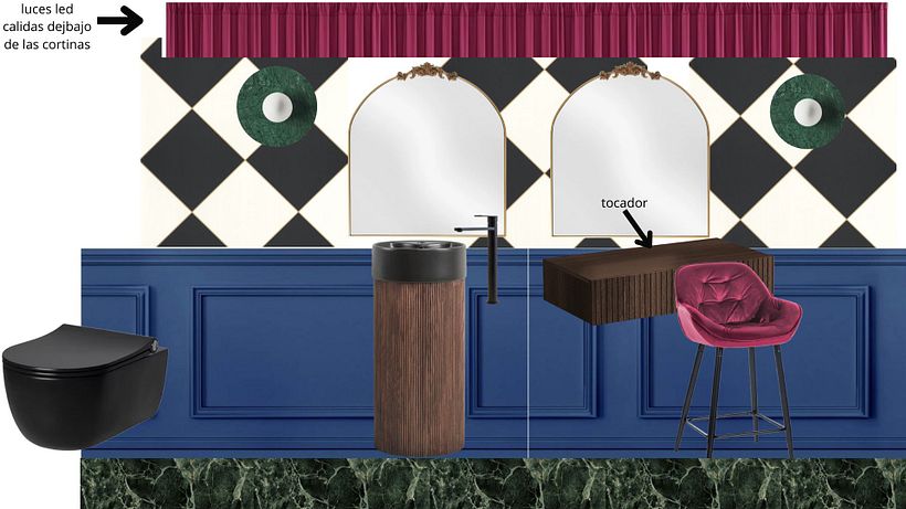 Mi lamina o moodboard consiste en un aseo concretamente el de mujeres de un bar o restaurante.