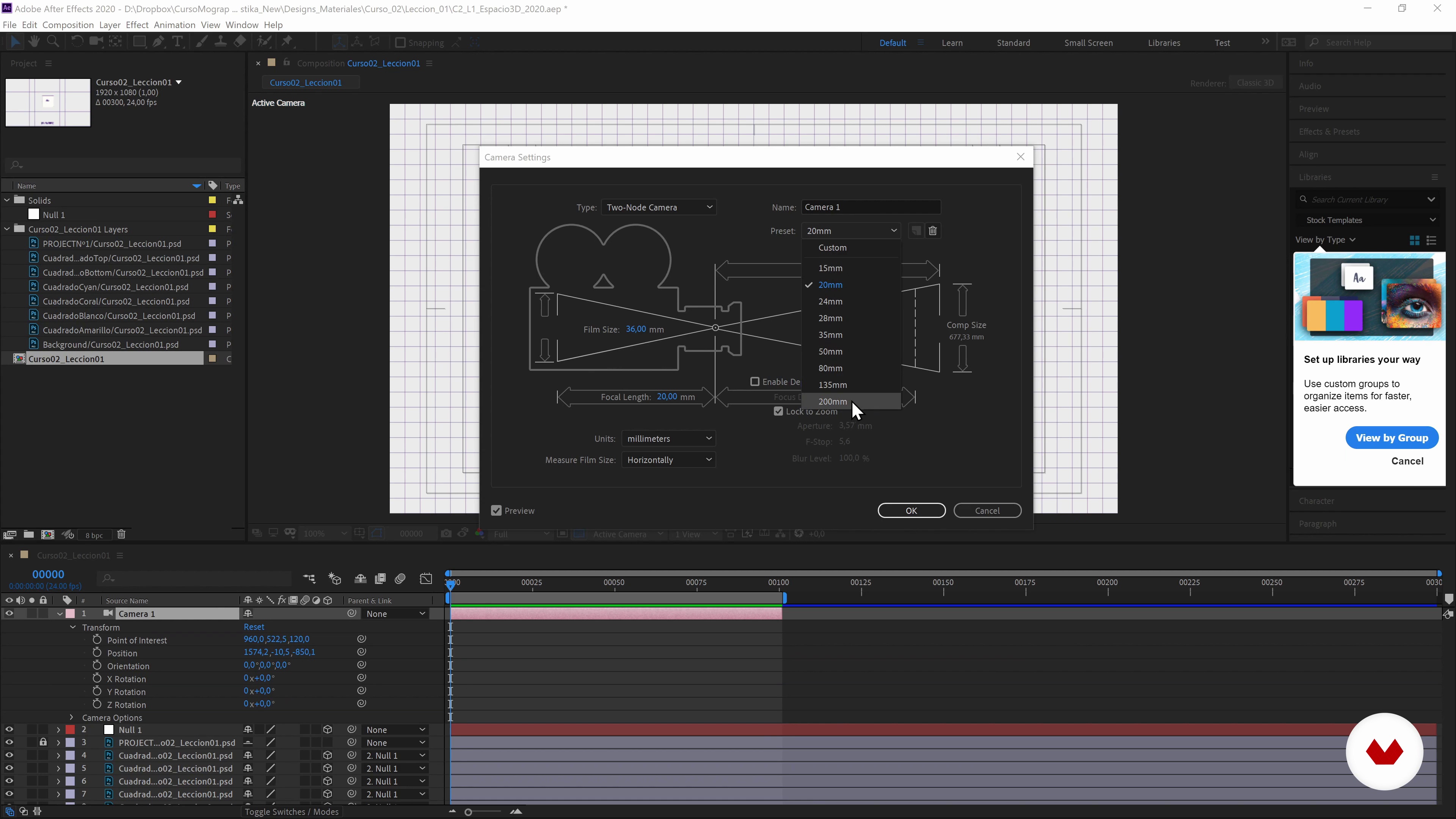“In deze les zullen we zien hoe camera's en lichten worden gebruikt en welke eigenschappen ze hebben in After Effects. ”