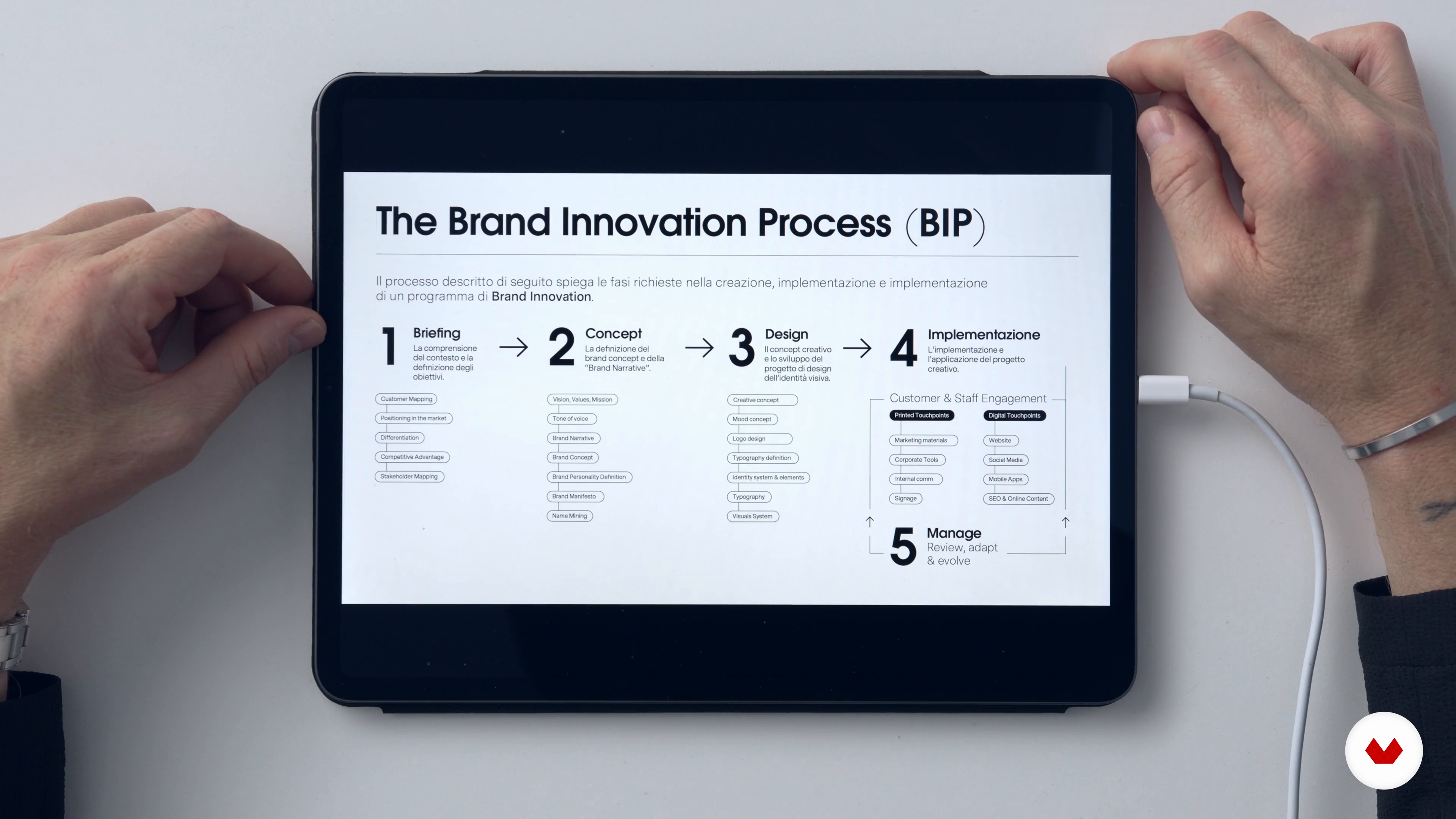 “Laten we het proces ontdekken dat moet worden gevolgd in een merkinnovatieproject. In deze les zullen we de fundamentele momenten zien van een pad dat overtuigende en bruikbare resultaten kan opleveren voor het creëren van een waardevol en herkenbaar merk.”