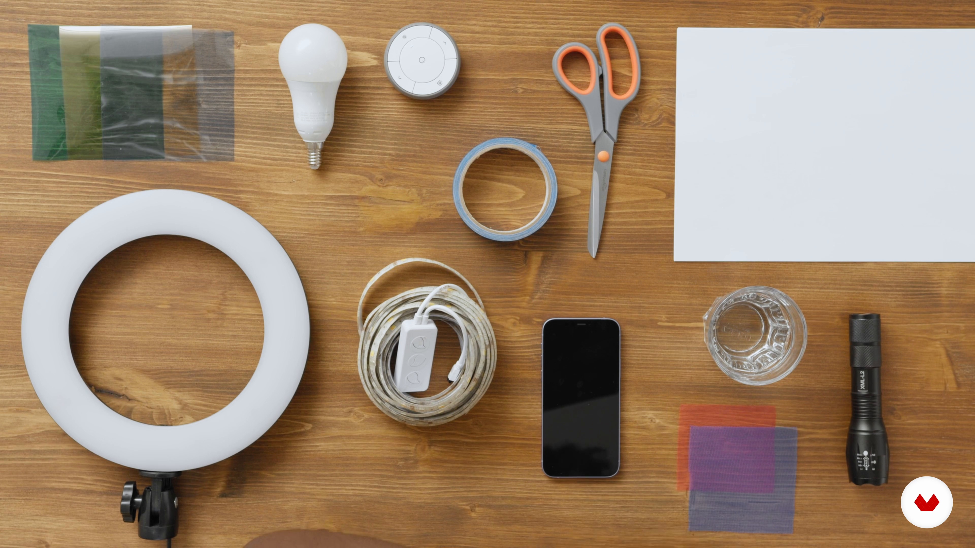 “Apparatuur In deze les laat ik je de benodigde materialen zien om deze Domestika-cursus uit te voeren. Het eerste absoluut noodzakelijke hulpmiddel is een smartphone uitgerust met apps PicsArt, Snapseed, Facetune en InShot. Je hebt ook een statief nodig. Voor het licht zal een lichtring nodig zijn, gekleurde gelatine die je ook kunt vervangen door verdelers. Met deze gelatine kun je het licht van je lampen veranderen. Dan heb je een lamp nodig die van kleur kan veranderen of een slinger van LED's. Voor de optiek van uw smartphone, je hebt stukjes gekleurde stof nodig. En tot slot voorwerpen...”