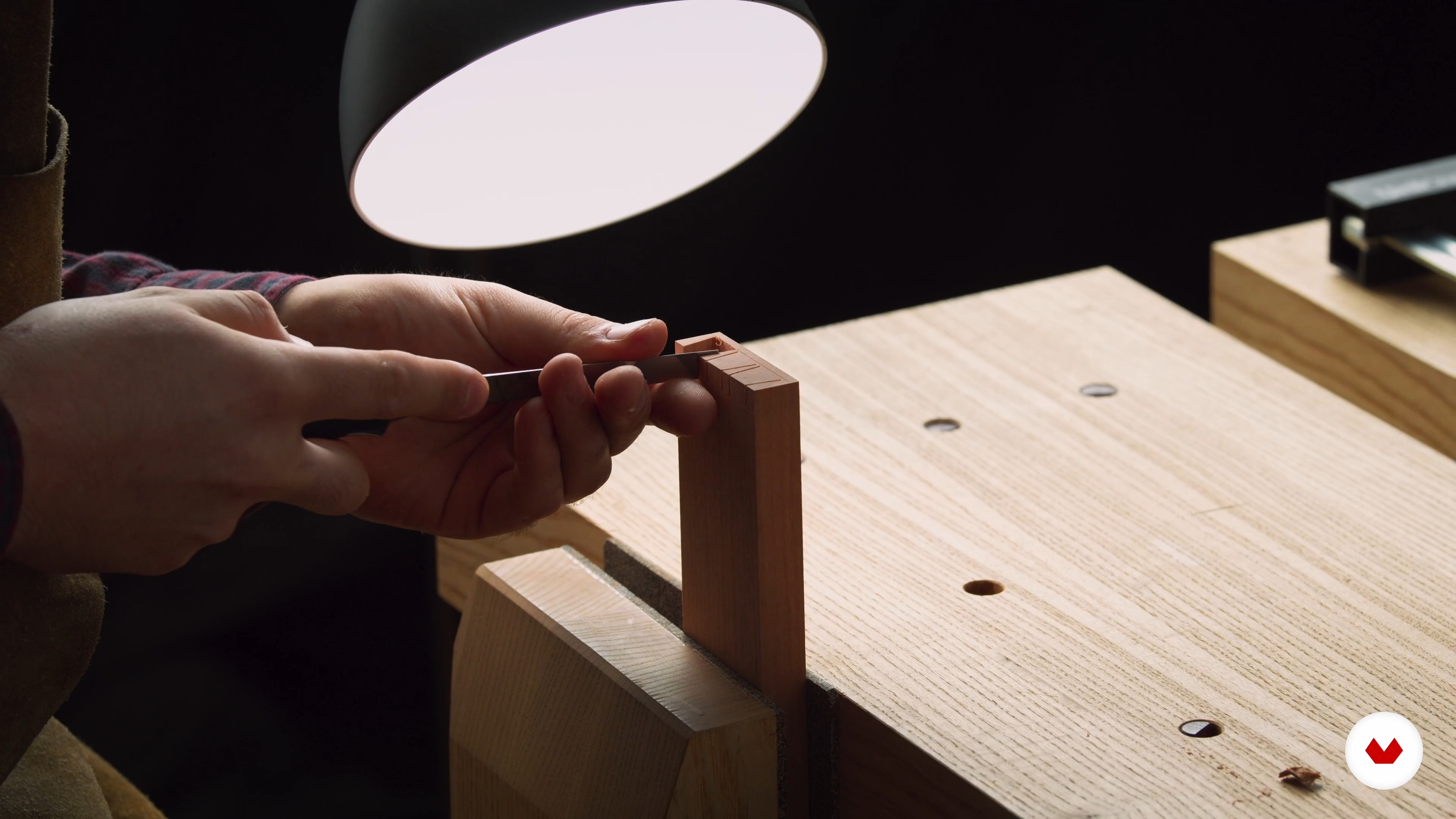 “In deze les ga ik verder met het zagen van de ladeverbindingen. Op dit punt is gedaan wat ik met de zaag kon doen. Ik ga met een beitel om het overtollige materiaal te verwijderen. Als je het gat voor de staarten gaat schoonmaken, is het belangrijk om te beitelen zonder te ver te reiken onderaan aan het begin, omdat het heel gemakkelijk is om de basislijn te overschrijden. Toen het eenmaal was aangekomen, heb ik het, zoals je zag, geleidelijk aan een beetje aan alle kanten schoongemaakt. Er rest nog de definitieve opstelling van de staarten die ik in de bankschroef ga maken ook met behulp v...”