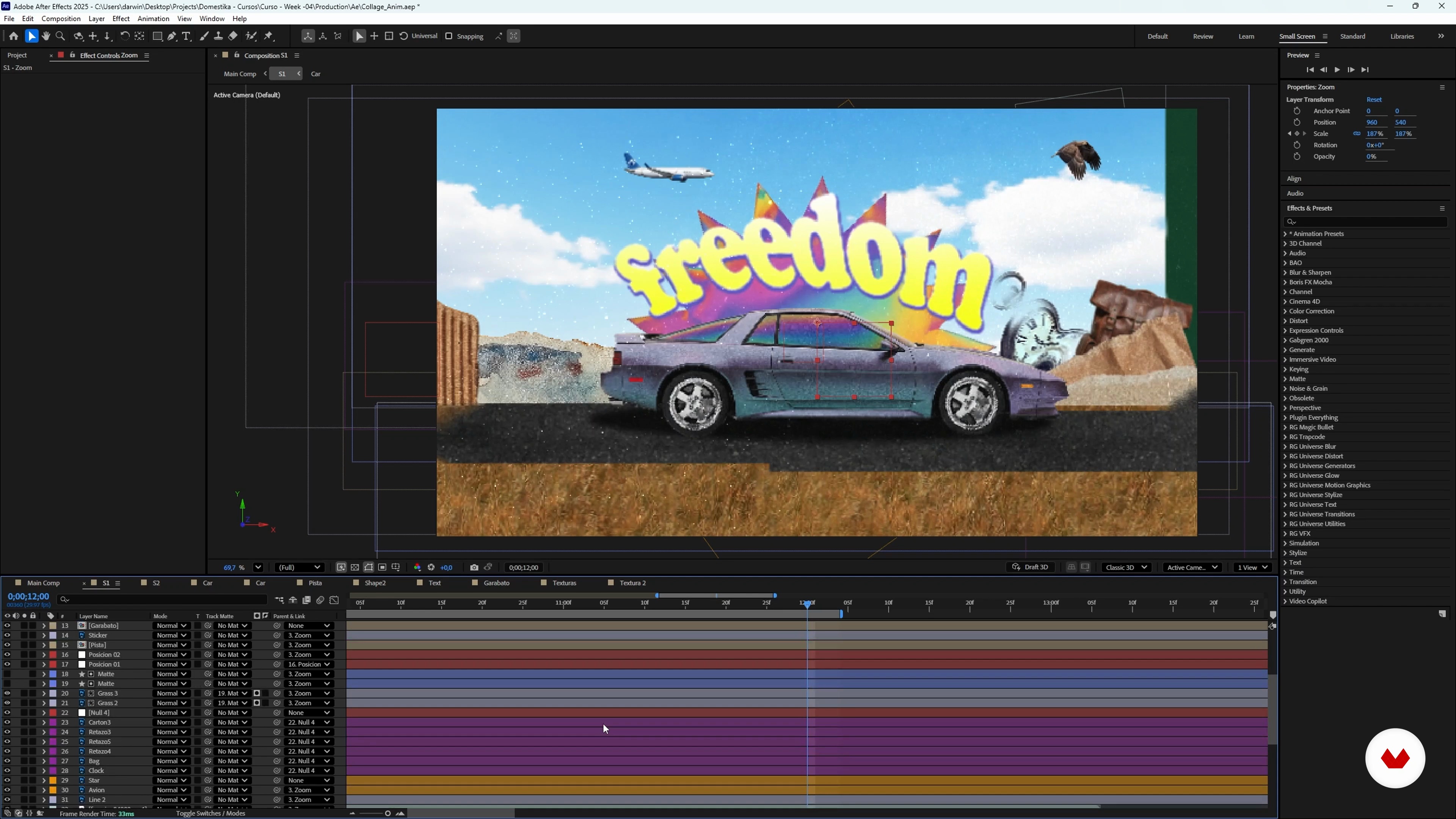 In deze videoles behandelt Darwin Pacheco het onderwerp: Laatste aanpassingen en project export, dat deel uitmaakt van de online cursus van Domestika: Geanimeerde collages met kunstmatige intelligentie, Photoshop en After Effects. Maak unieke geanimeerde collages met kunstmatige intelligentie met behulp van Photoshop en After Effects voor digitale creatieve projecten.